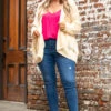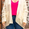 Bundle up in this beauty! This cardigan has a neutral cream color that is so easy to pair with all of your favorite outfits! The knitted design is so sweet and trendy! Grab this cardi and layer it over a cute top and skinnies for a casual chic look!