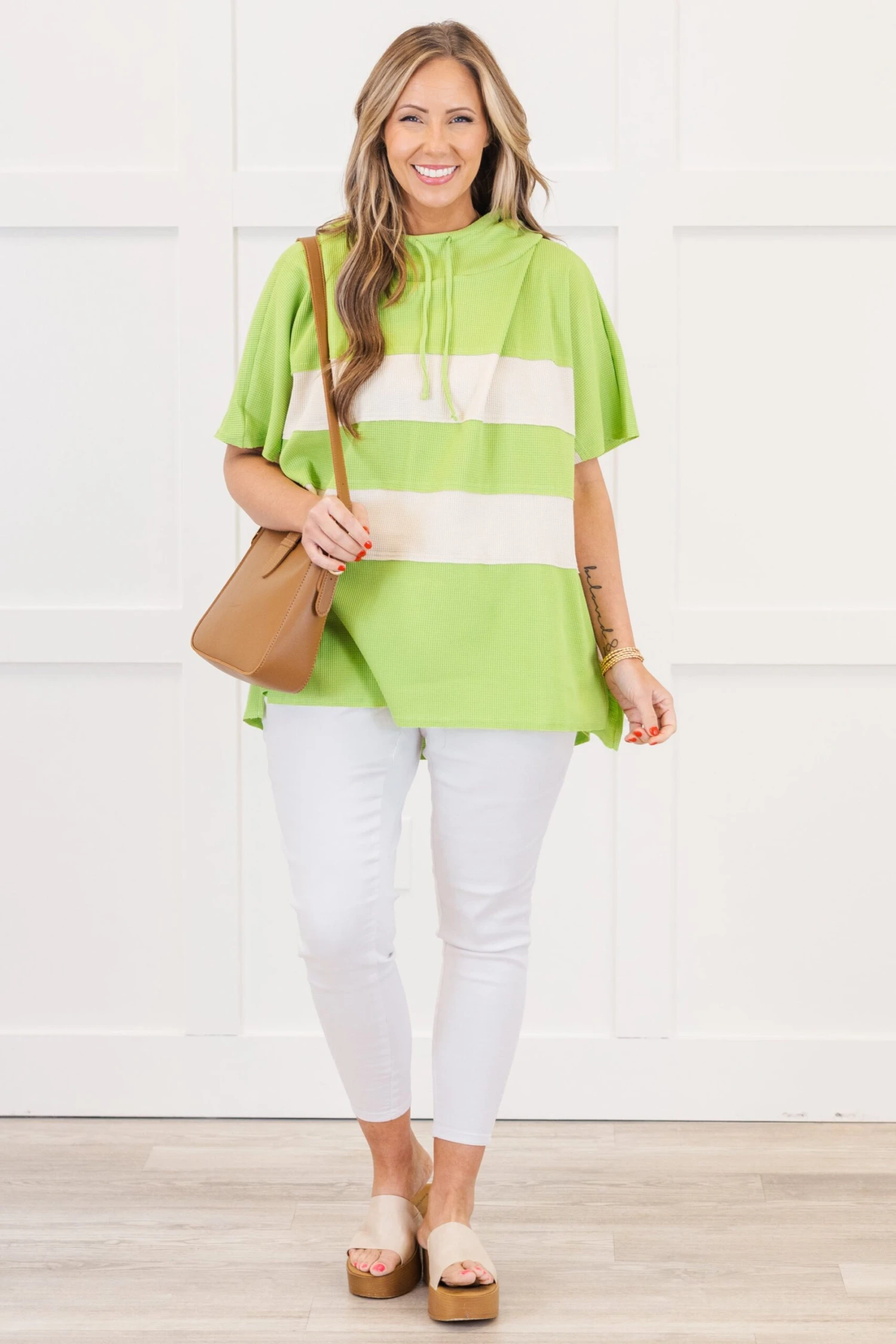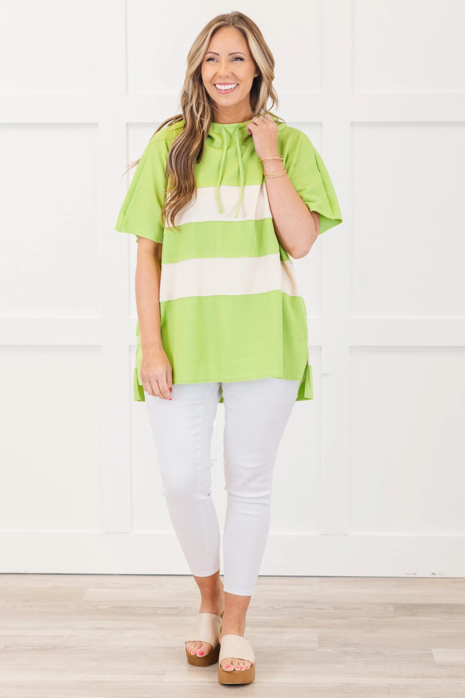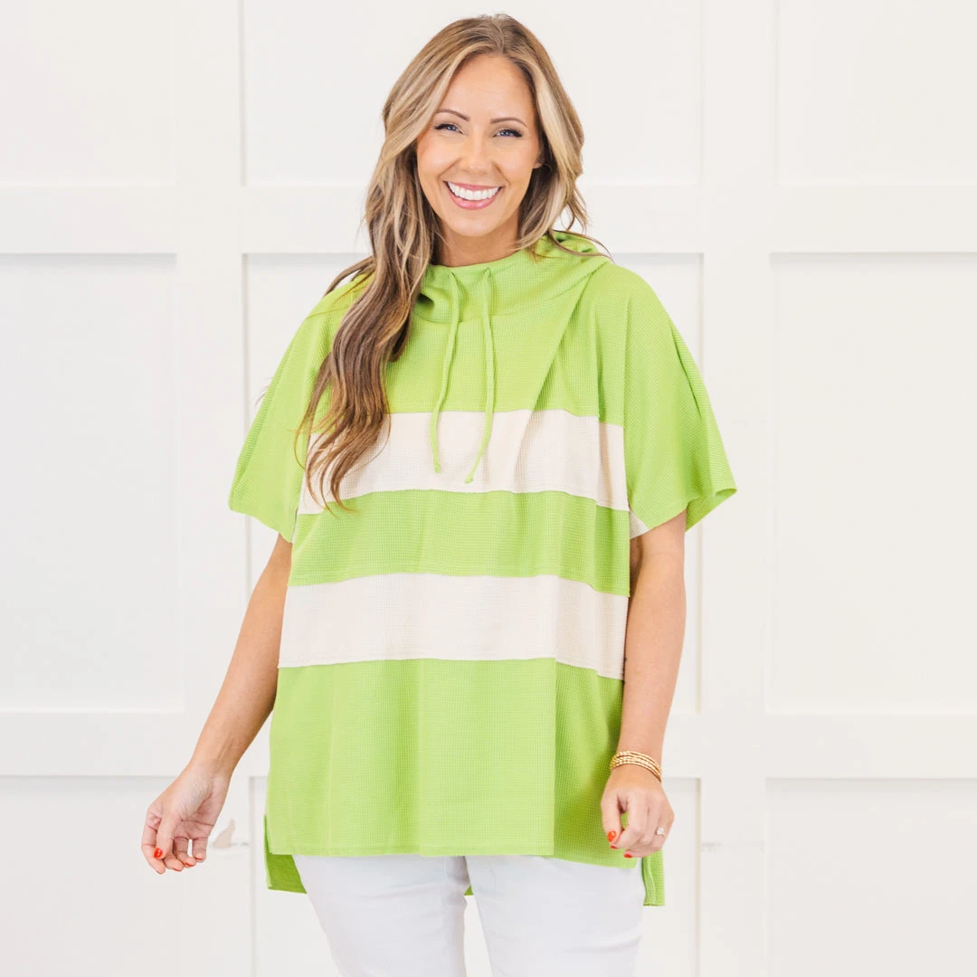 Get ready to take on the day with our Busy Morning Hoodie in vibrant green! This color block short sleeve hooded top features an adjustable drawstring for the perfect fit! Stay stylish and comfortable while conquering the day!