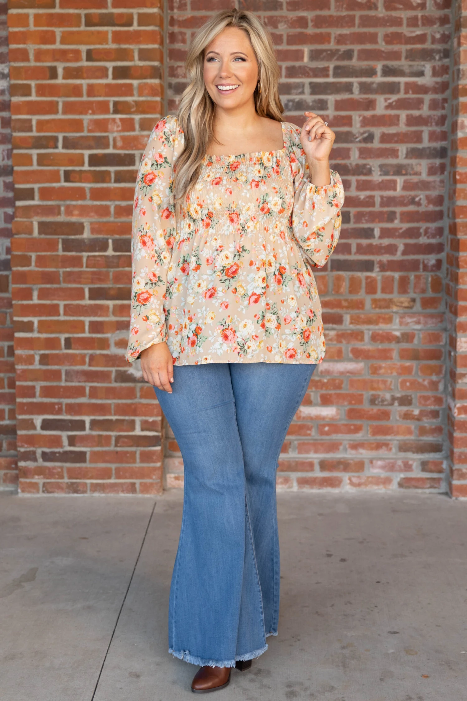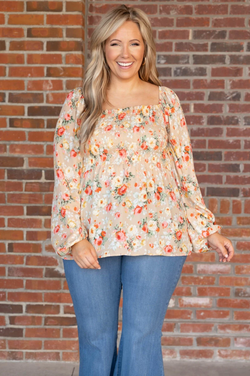 Grab this beauty for a night out on the town! The soft orange color and smocked bodice are so figure flattering and definitely season favorites! Whether you’re going out with friends or for a late business meeting, this top is perfect for the occasion! Style this top with some cute jeans and booties for a fun, casual look!