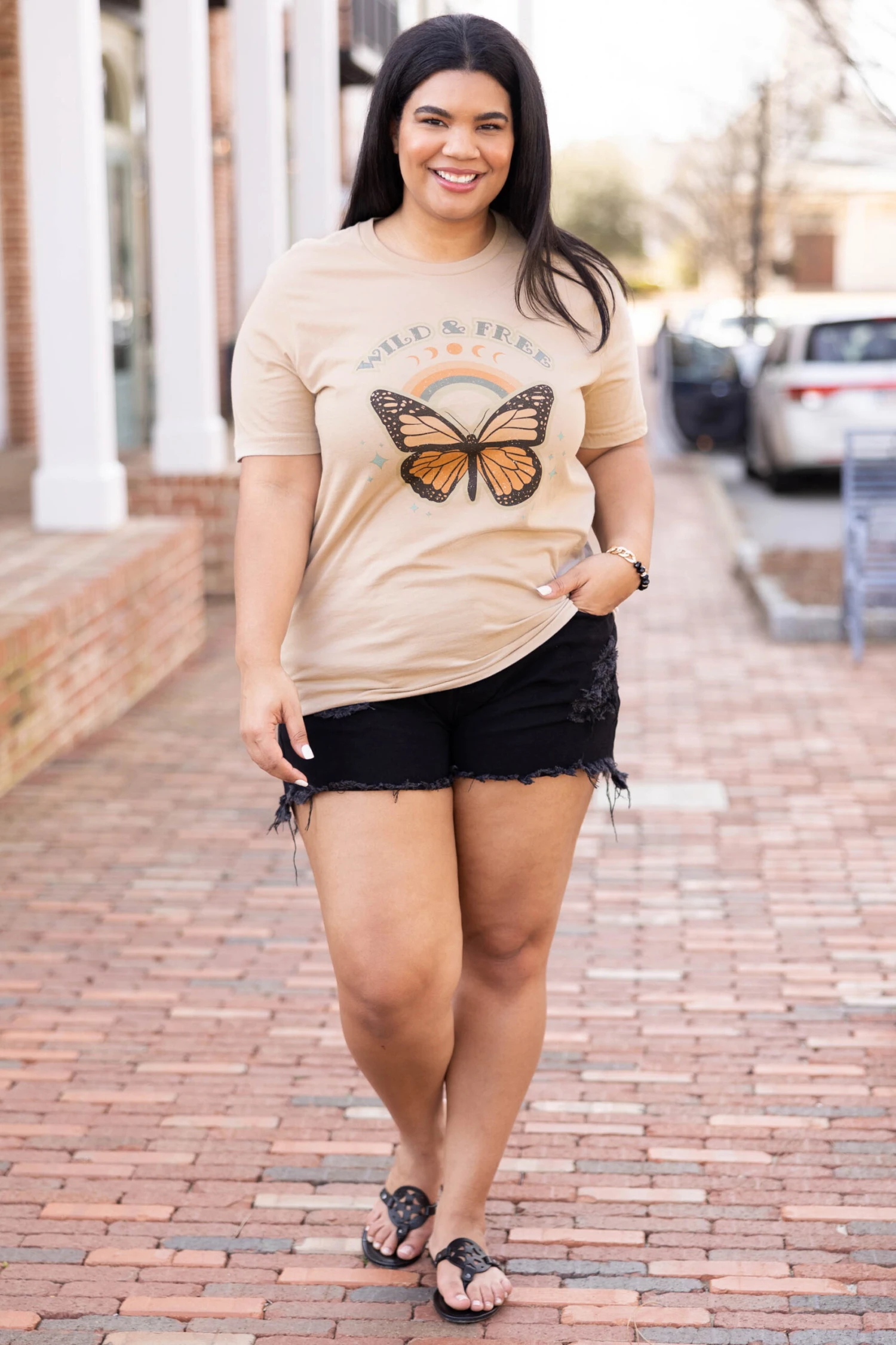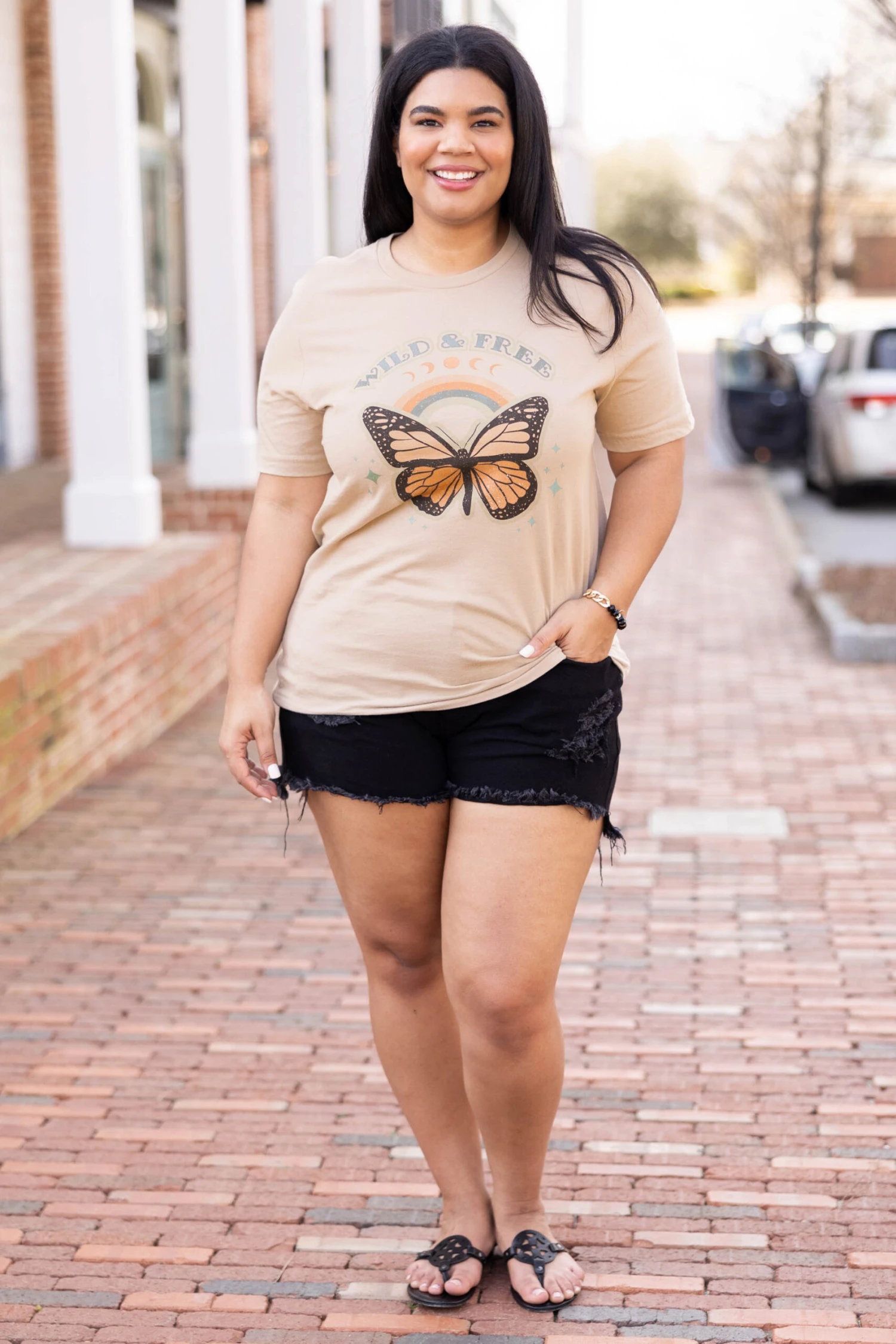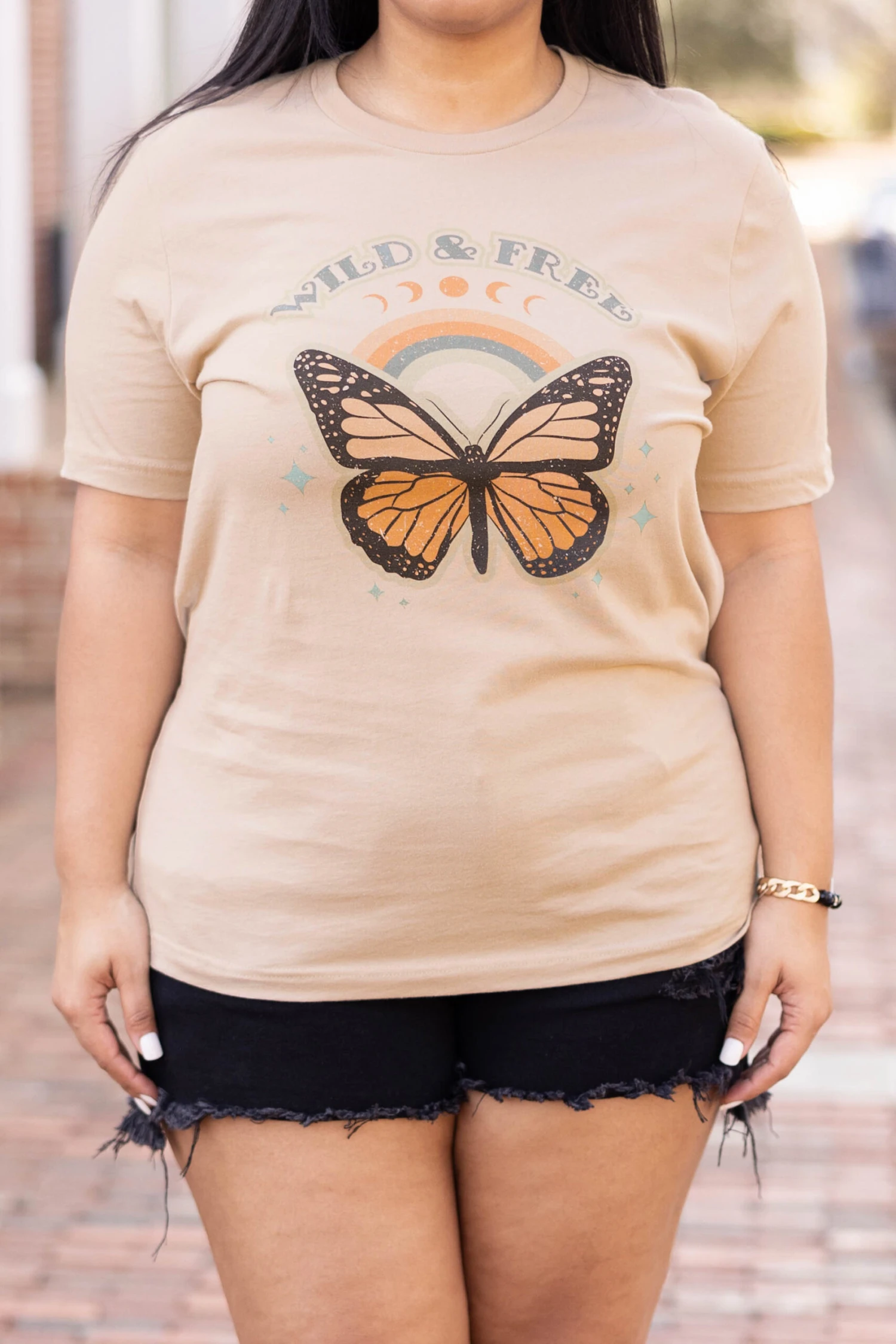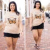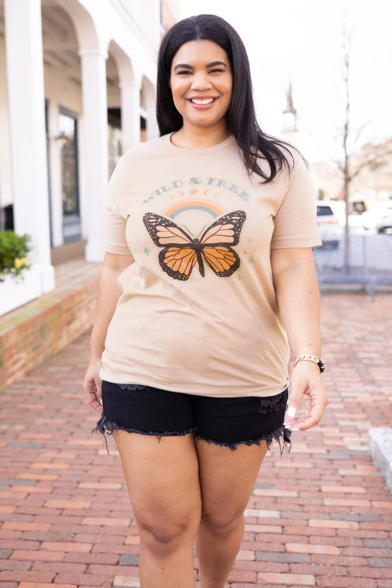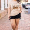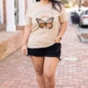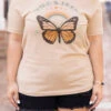 You’ll be as beautiful as a butterfly in this tee! It has a neutral tan color with a cute graphic that is so sweet! The classic t-shirt fit is great for a day out on the town! Pair this cutie with some shorts or leggings for an everyday chic look!