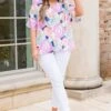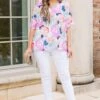 You’ll be buzzing with joy in this lovely top! This floral-patterned top in a pretty pink-red hue is perfect for pairing with white denim and a cute blazer! Ideal for the office or a casual day out, this top adds a touch of feminine charm to any outfit!