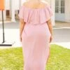 This beachy beauty is perfect for just about any occasion! This one is just as cute as it is comfy! The dusty pink fabric is super soft and stretchy and creates an ultra loose, forgiving fit. It features pockets and a split side seams for the ultimate look! But, our favorite part is that elastic ruffled off-the-shoulder neckline! It’s so fun and trendy!Â