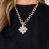Add some vintage charm to your jewelry collection with this necklace! This gold necklace features a beautiful pearl and opal pendant, held together by a trendy toggle chain! Perfect for adding a touch of elegance to any outfit!