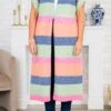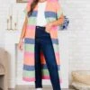 Stay cozy and stylish all year round with this cardigan! This multi-colored, long knitted cardigan features a unique color block design and short sleeves! Perfect for layering on cooler days or adding a pop of color to any outfit! Upgrade your wardrobe with this versatile and trendy cardigan!