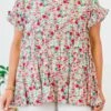 Be as sassy as you want in this top! The mint-coral floral pattern is so pretty and the tiered style is so flattering on every body type! We love the sweet ruffles on the sleeves and the high neck style that is super trendy! Style this with white denim and some wedges for a chic everyday look!