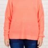This FAB sweater offers a knitted design and a lovely neon coral pink color! It’s comfy, cozy and pairs easily with skinnies or leggings, making it the perfect addition to your wardrobe! The luxurious feel of the sweater is sure to keep you warm and stylish!
