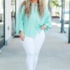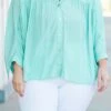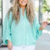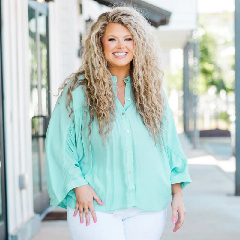 Stay calm and collected in this gorgeous aqua top with batwing sleeves! The functional buttons make it easy to wear, while the lightweight fabric keeps you feeling cool and comfortable! Perfect for any occasion, this top is sure to become a staple in your wardrobe!
