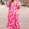 Your beauty can’t be outdone in this FAB dress! Featuring elegant puff sleeves, a beautiful floral pattern, and a flattering smocking detail on the back, this dress is a must-have for any fashion-forward individual! Make a statement in this stunning pink dress wherever you go!