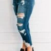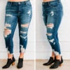 You will never need to say goodbye to these jeans! They are perfect in every way! These jeans have a classic dark wash and trendy distressing that is so easy to dress up or down! They have a comfortable fit and look good on every figure! We see these jeans paired with a cute top and jacket and cool sneakers! Add your favorite jewelry and you are good to go!Â