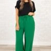 You’ll look so fabulous you can’t sit still in these pants! They are a must-have for every wardrobe! These lovely pants feature an elastic waistband for exceptional comfort and flexibility, and the pretty kelly green color pairs well with any of your favorite tops! Ideal for any occasion!