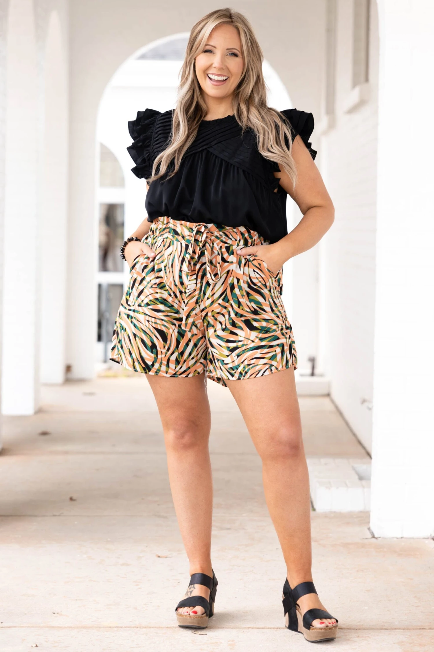 These gorgeous shorts will leave you speechless! The bold colors and patterned style are so chic! The waist tie and figure flattering fit are just what you need for your next night out! Pair these shorts with a sassy blouse and wedges for the ultimate chic look!