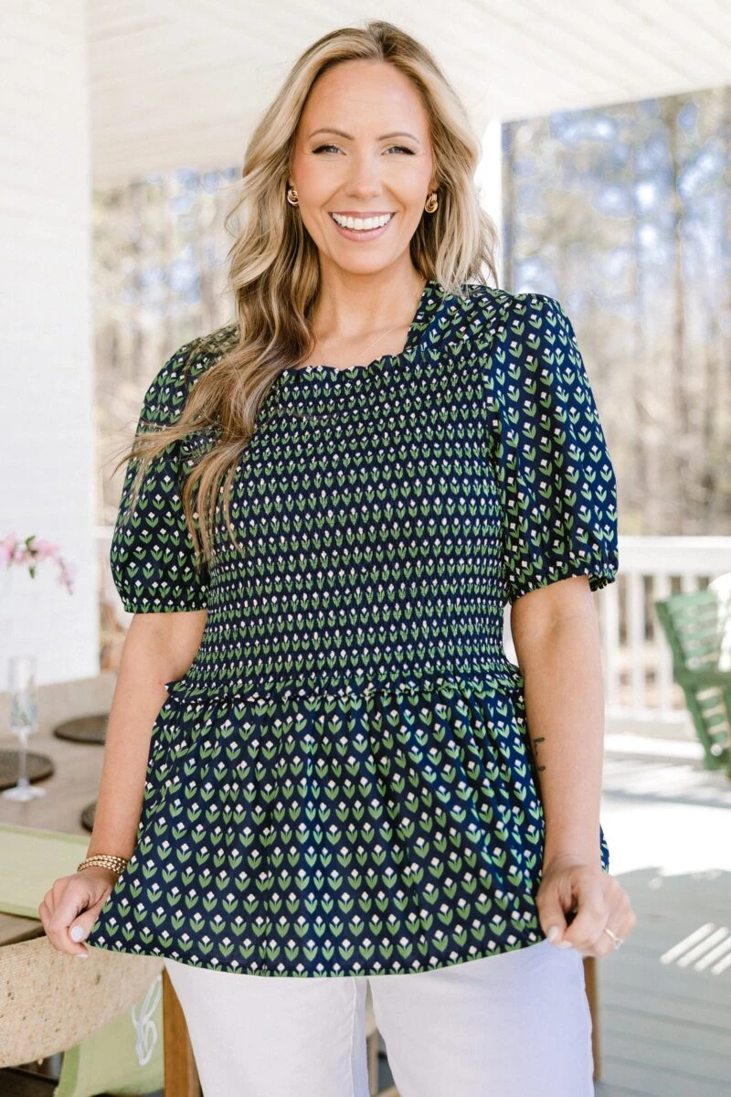 We can’t believe how cute this top is! The navy floral pattern is so stunning and absolutely perfect for spring! This babe has a smocked top to hug you in all the right areas and the puff sleeves are so trendy! Style this with skinnies and sandals for a super stylish look!