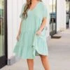 We simply adore this dress! Expertly designed with a flattering babydoll shape, this dress in lovely sage is the perfect choice for a brunch date! Elevate your style with this sophisticated and versatile dress that is sure to make a statement!