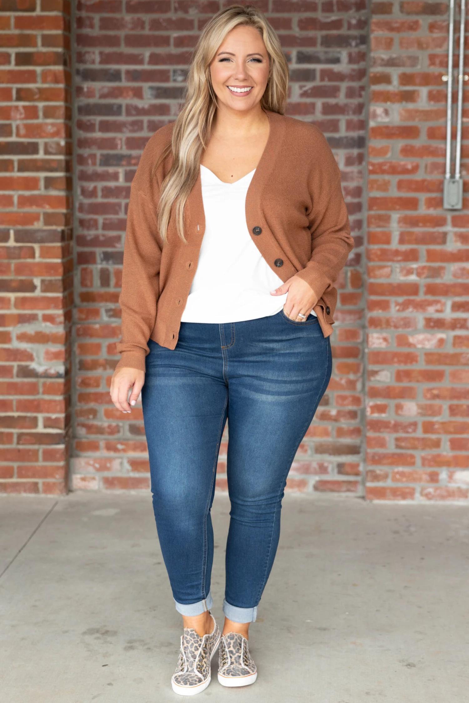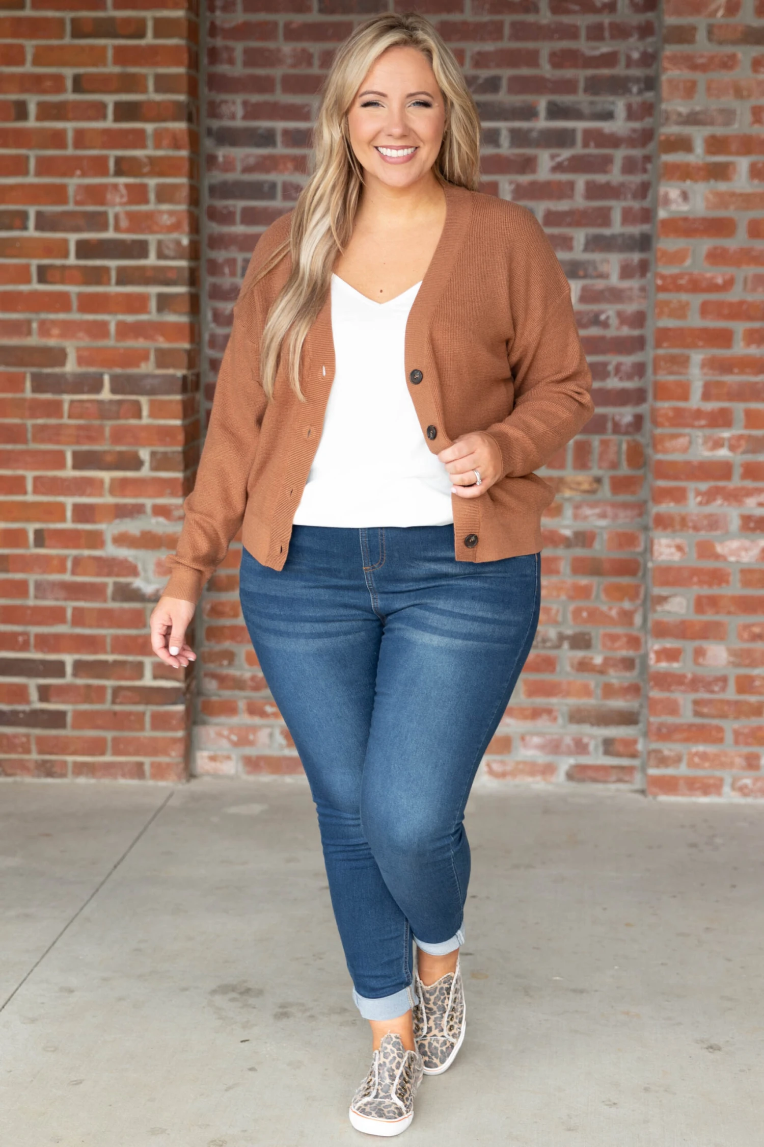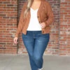 Can you imagine missing out on this gorgeous cardi?! The soft neutral color and stretchy material is perfect for pairing with all your faves this season! Style this cardigan with a solid top and skinnies or a cute dress for an effortlessly, chic look!