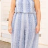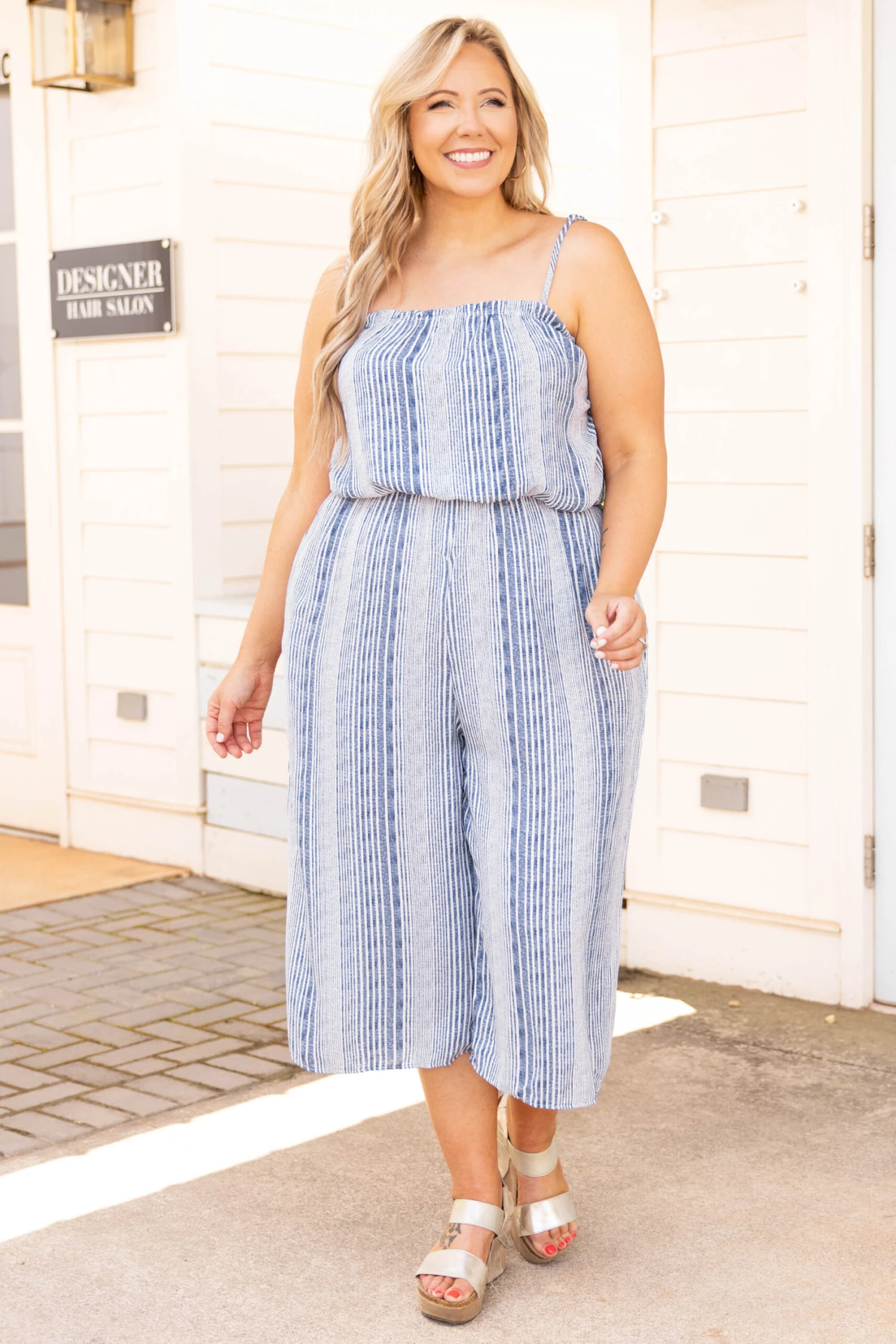 Get your catamaran couture on in this jumpsuit! The navy stripe color is perfect for a boat ride and the elastic cinched waist will look good on anyone! The straps are adjustable so you can have the perfect fit and the flowy pants are so comfy! Style this with some wedges or heels for a perfect look!