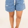Catch the tide in these shorts! These have an elastic waist with an adjustable tie and a light distressed look. These are perfect for a day lounging on the beach or running errands just throw on a tank and some cute sandals and you are ready to go!
