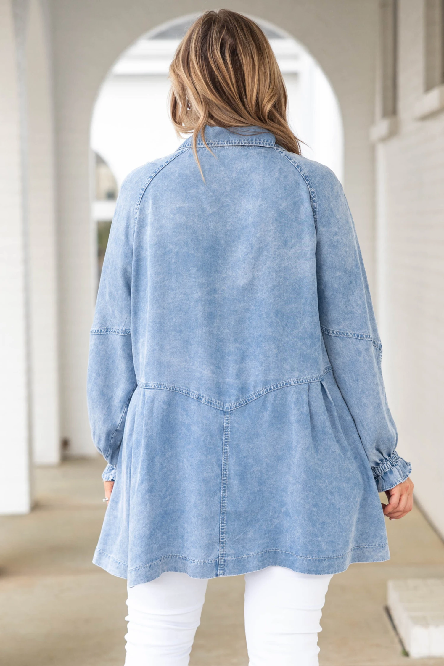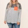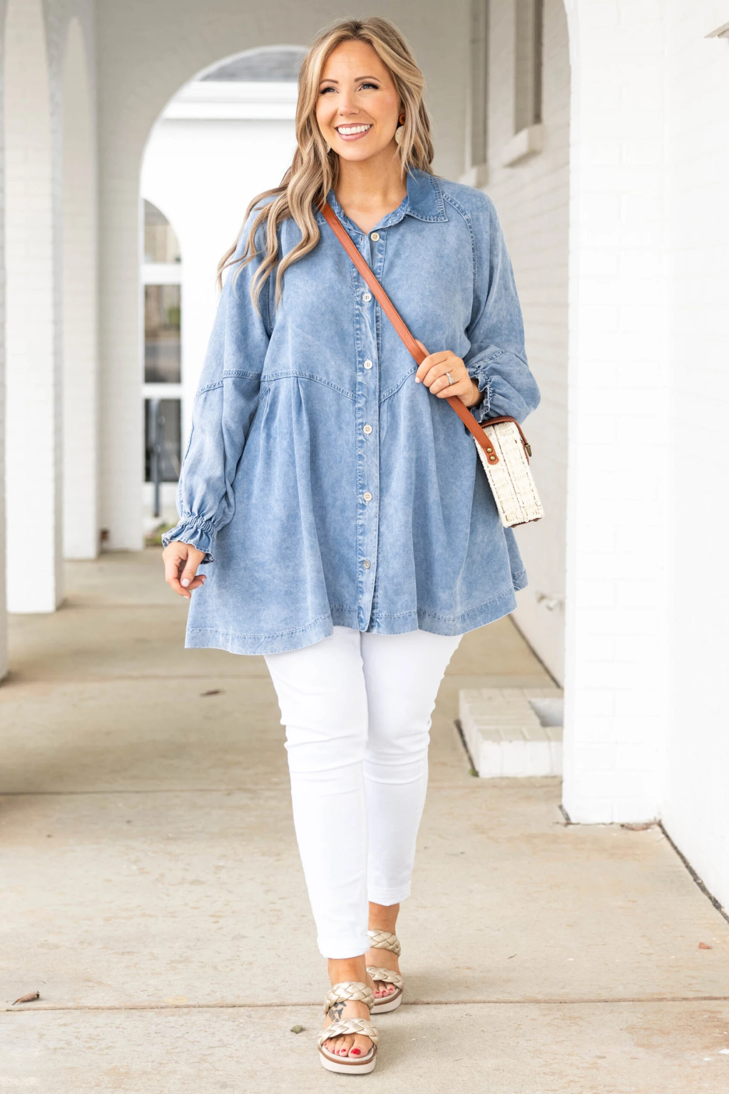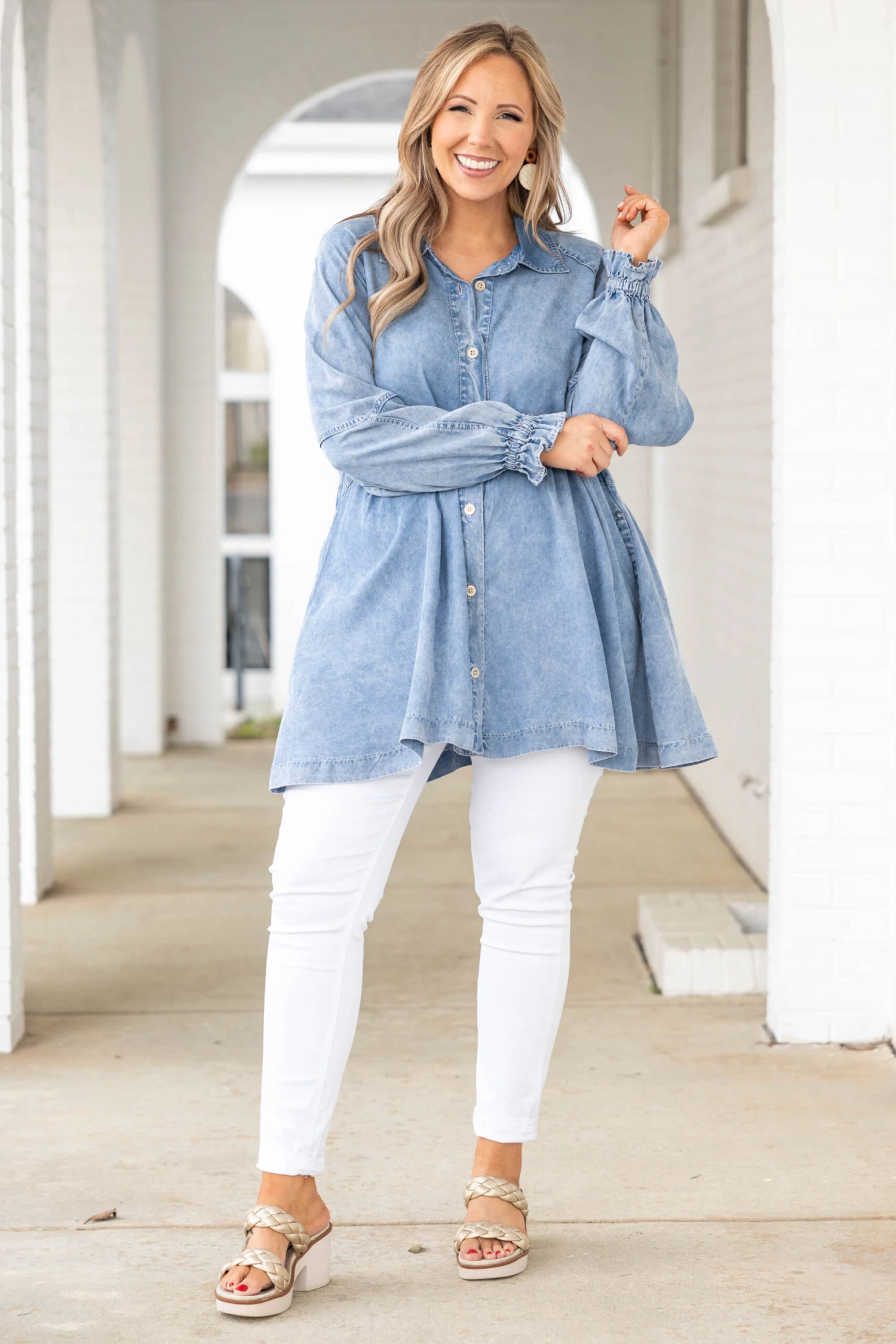 We are in LOVE with gorgeous top! This top has a super trendy acid wash and a lightweight, comfy design that is perfect for season! The bubble sleeves and functional pockets are so sweet! Style this top with jeggings or shorts for a classic chic look!