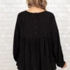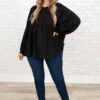 This top is beautiful to everyone who lays eyes on it! It has a stunning black color that’s perfect for the season! It’s comfortable for all-day wear, has a flowy fit, and features the cutest babydoll fit we absolutely adore! Style this top with skinnies and sandals for an effortlessly chic look!