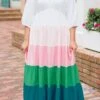 Add some color to your wardrobe for the season! This dress is the perfect piece for any occasion! Boasting a flowy maxi silhouette and a stunning colorblock design, you’ll look timeless and chic for your next brunch date!