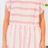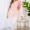 Add this cutie to your wardrobe! It features a pretty pink color with a stripe pattern that is so sweet! The babydoll design and flutter sleeves are a stylish and feminine look! Perfect for adding some charm to your wardrobe!