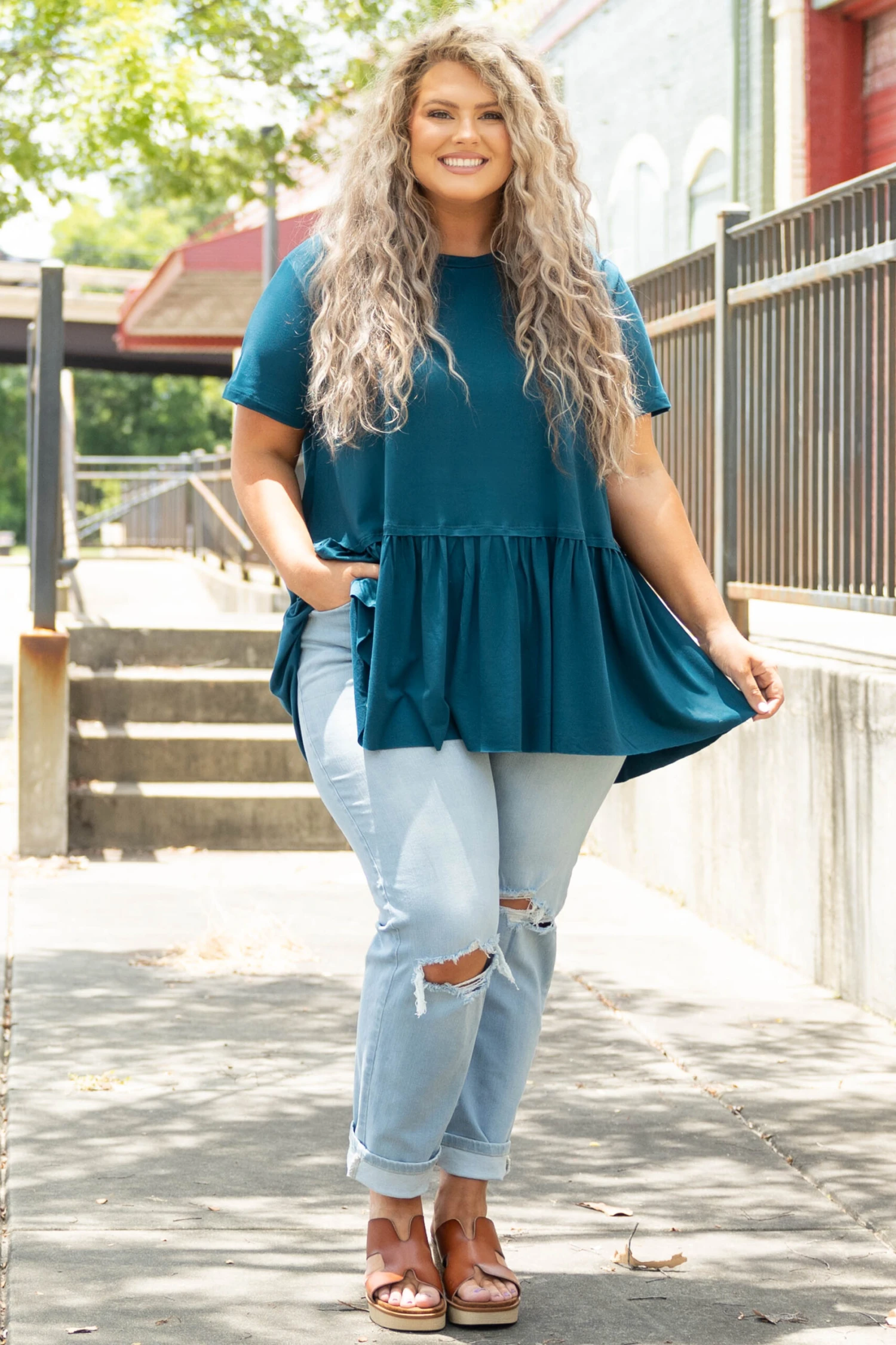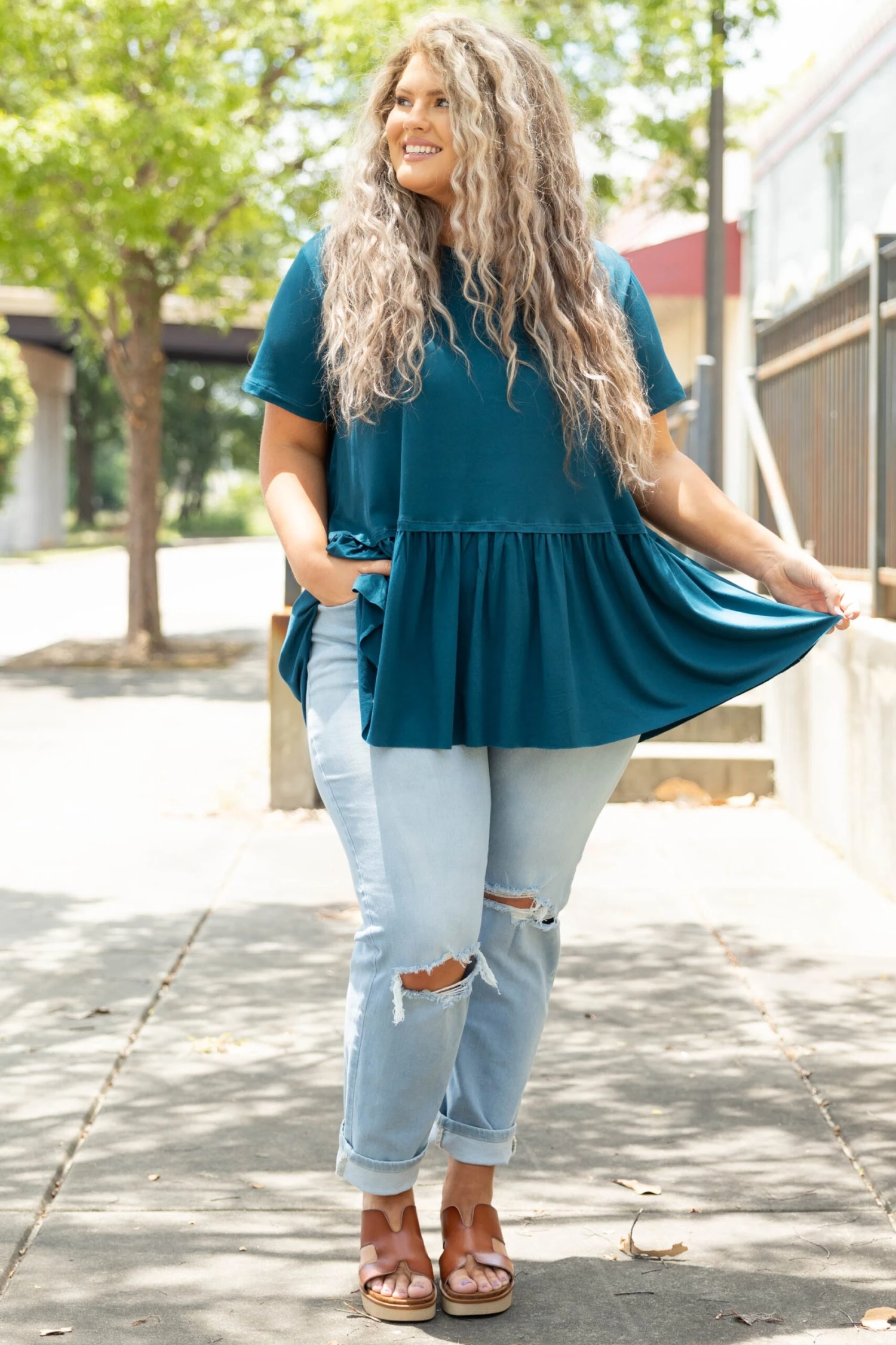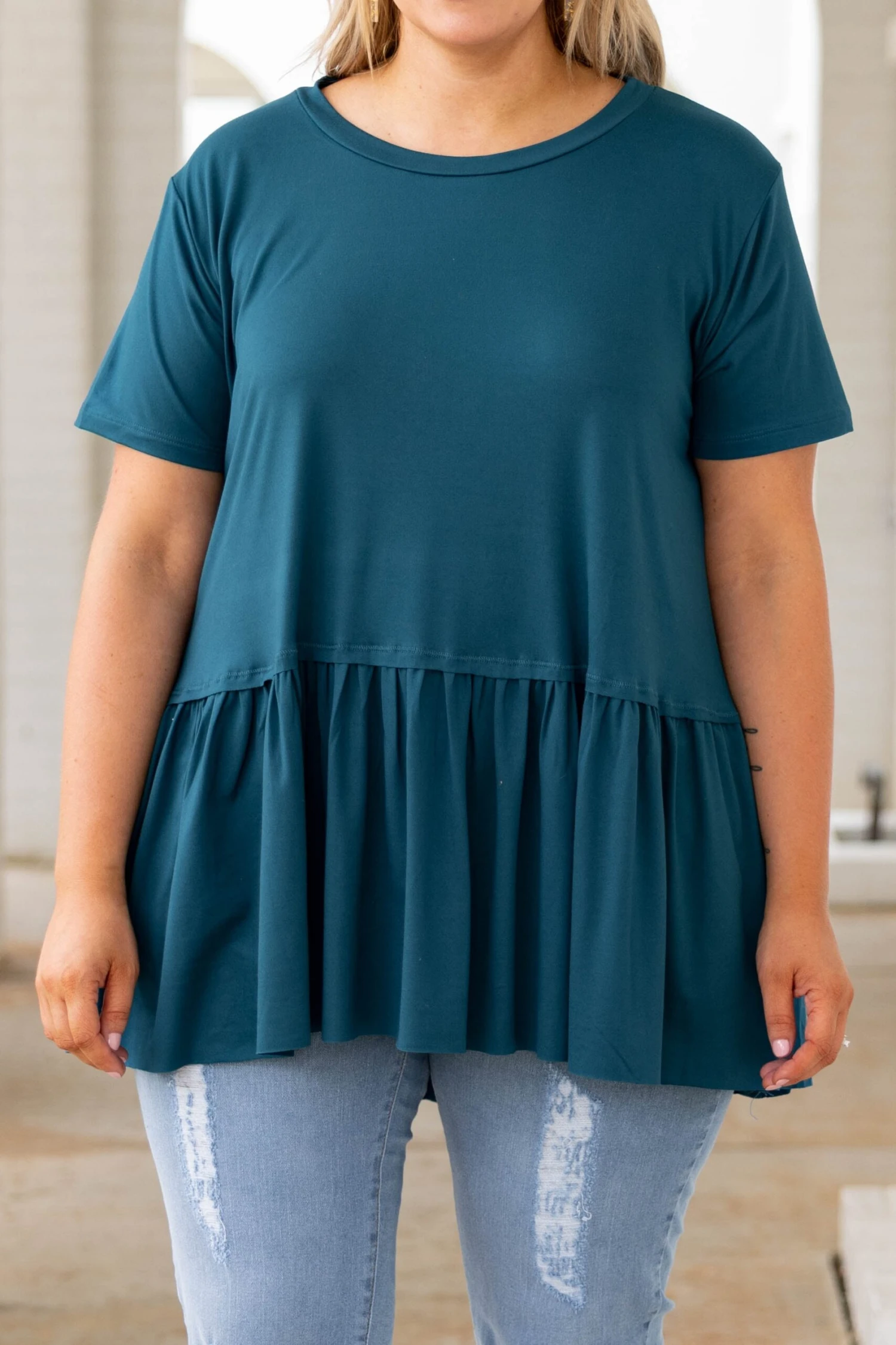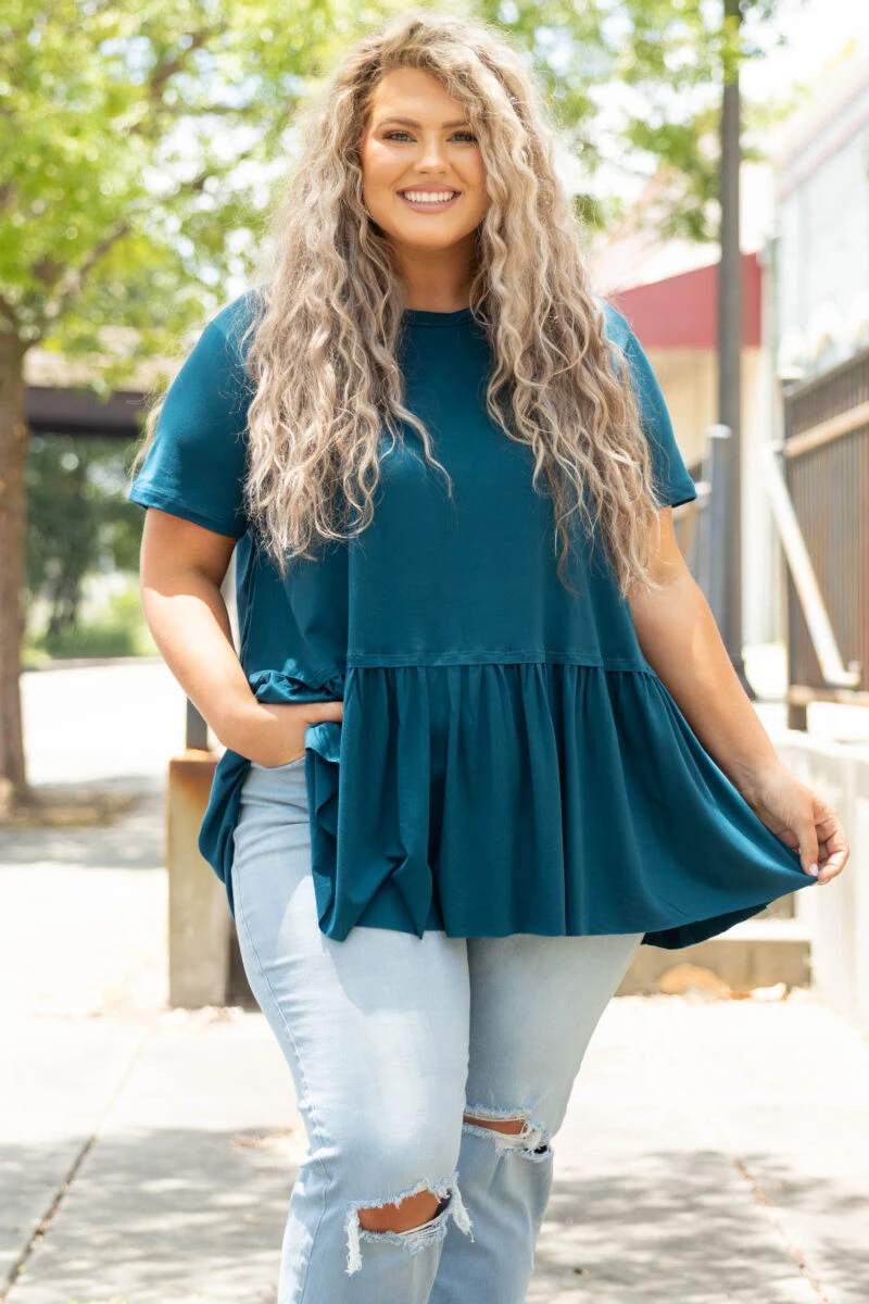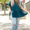 Charm the crowd in this cutie! The babydoll style and teal color is just what you need for this season! The simplicity of this top means you can pair it with all your faves! Style this with skinnies and wedges for a classic look!