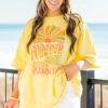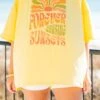 This oversized boyfriend tee in butter yellow is perfect for a comfortable yet stylish look! Featuring a sunset graphic, it adds a touch of personality to any outfit! Its loose fit and soft fabric make it the ideal choice for a casual day out!