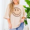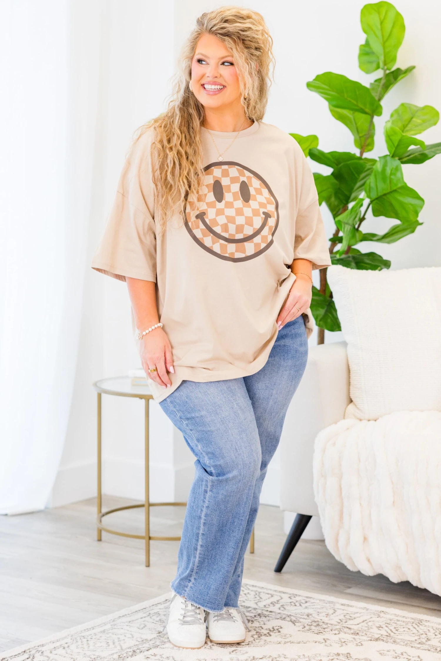 This boyfriend tee will definitely put a smile on your face! The light mocha color pairs well with all your faves and the checkered smiley is the perfect mix of fun and sassy! Style this oversized tee with some cute denim or leggings for a bold, chic look!