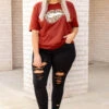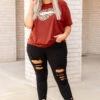 Seal the deal and get this top! This trendy tee has a simple graphic design with neutral colors you can pair with everything in your wardrobe! It’s comfortable for all-day wear, has a fit to flatter your figure, and is perfect for the season! Style this top with skinnies or shorts for a fun and flirty look!Â