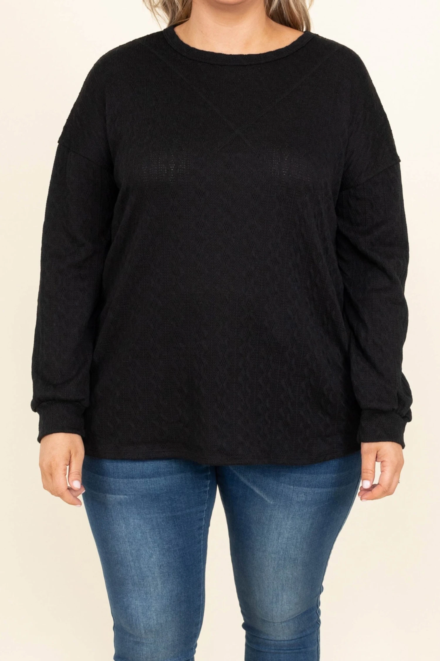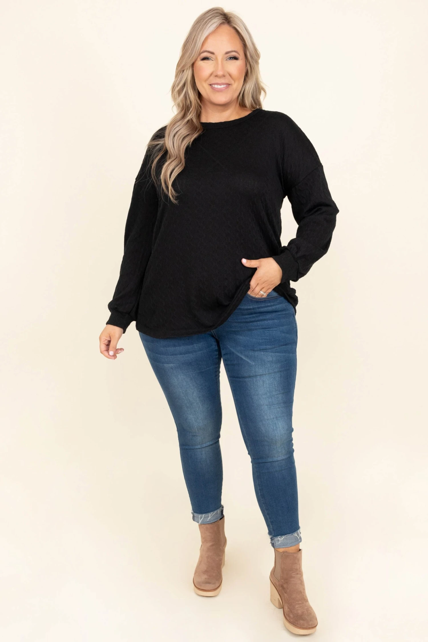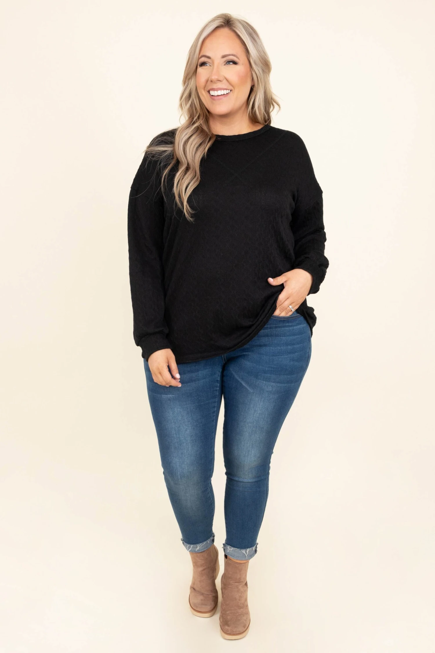 You’ll want to cherish this beautiful top! It has a classic black color with a textured material that you can style for every occasion! It’s comfortable for all-day wear, has a stretchy fit, and features a high neckline! Pair this top with skinnies and booties for an effortlessly chic look!Â