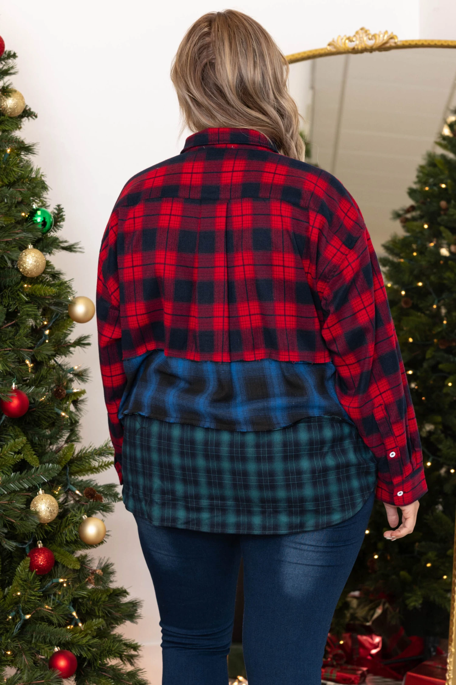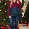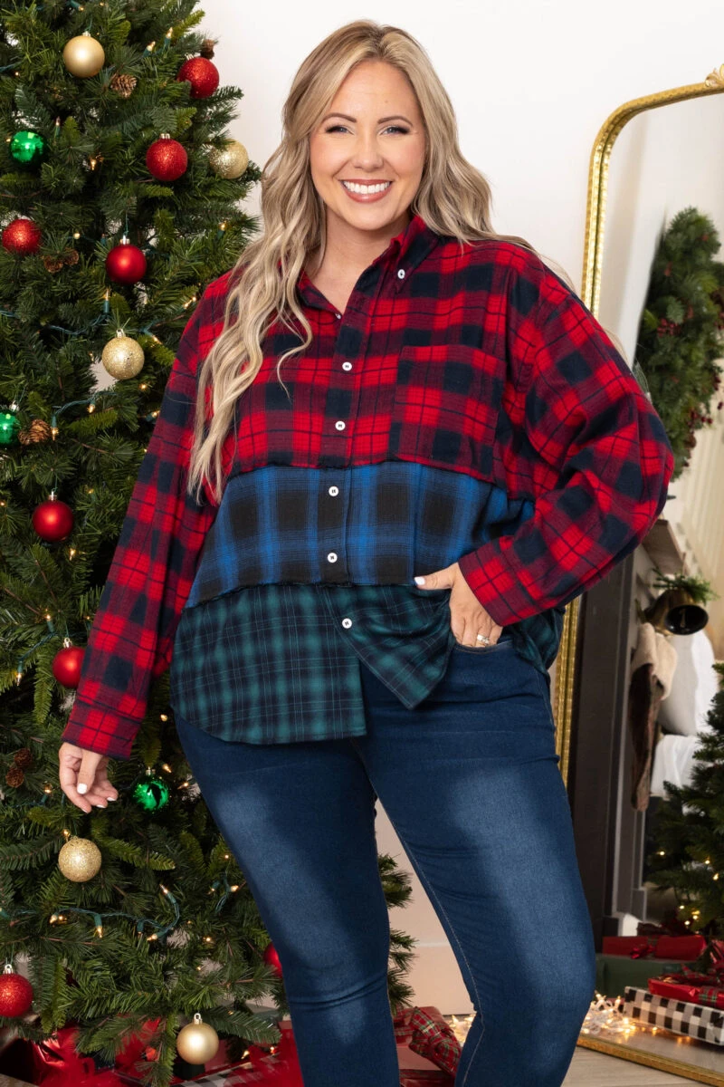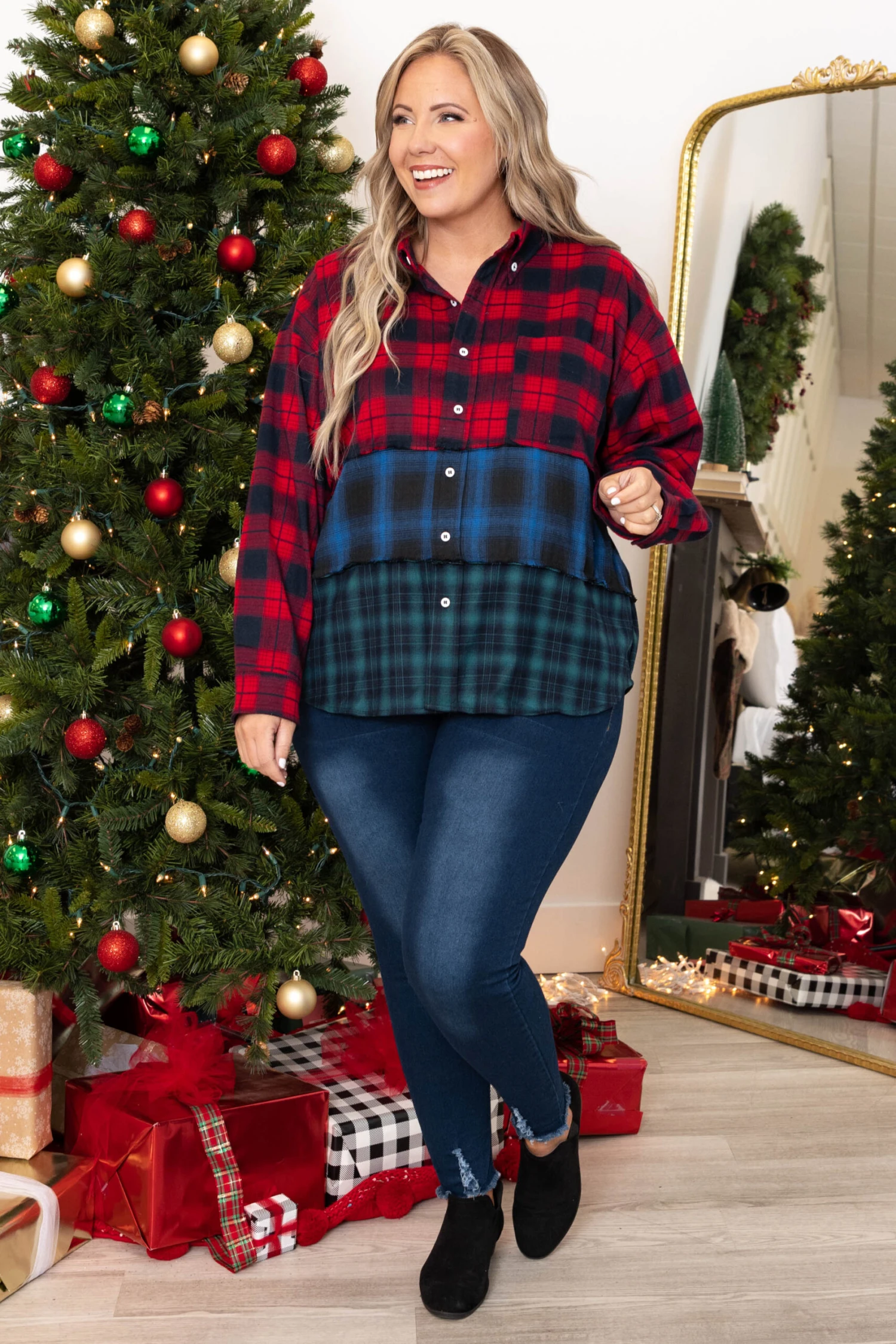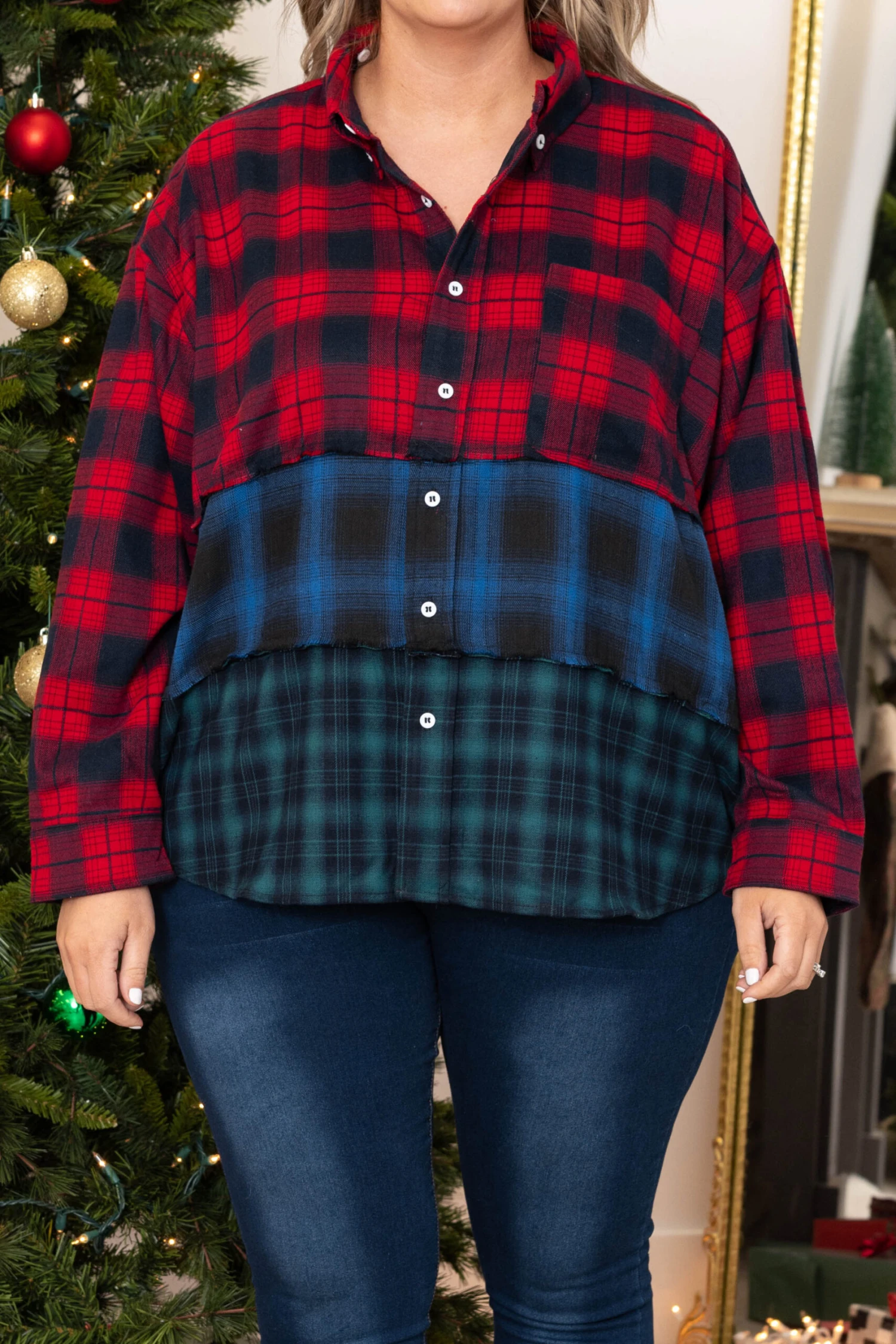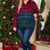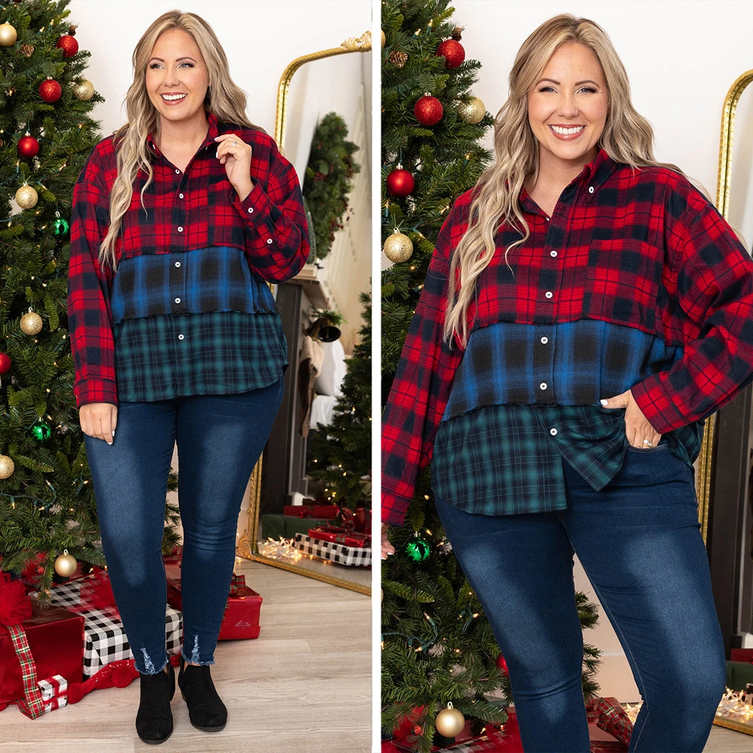 Sip some cider by the fireplace in this gorgeous shacket! It has a lovely color mix with a trendy plaid pattern and a colorblock design that is perfect for the season! Style this with a solid top and skinnies or as a shirt for an unforgettable chic look!