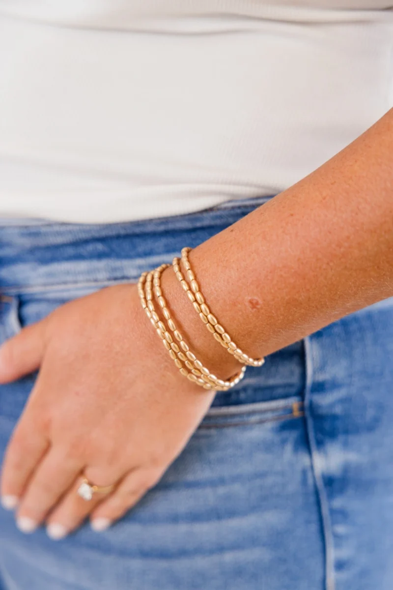 Introducing our Classic Rhythm Bracelet Set in radiant gold! This set features a stack of delicate beaded bracelets that will add a touch of elegance to any outfit! Better yet, mix and match with other accessories for a unique look!