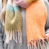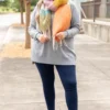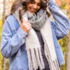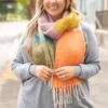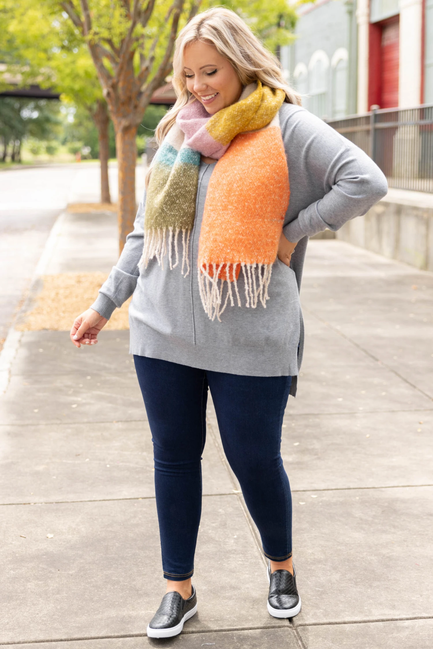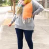 We simply love this beautiful scarf! This scarf has a gorgeous multi color design and trendy tassels along the bottom! Style this scarf with a solid top and skinnies for a chic, cozy look this season!