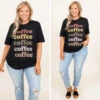 This tee is for all the coffee lovers out there! The neutral vintage black color is so easy to pair with all of your faves and the coffee print is so cute! Style this with your fave shorts and sandals for a super cute look!