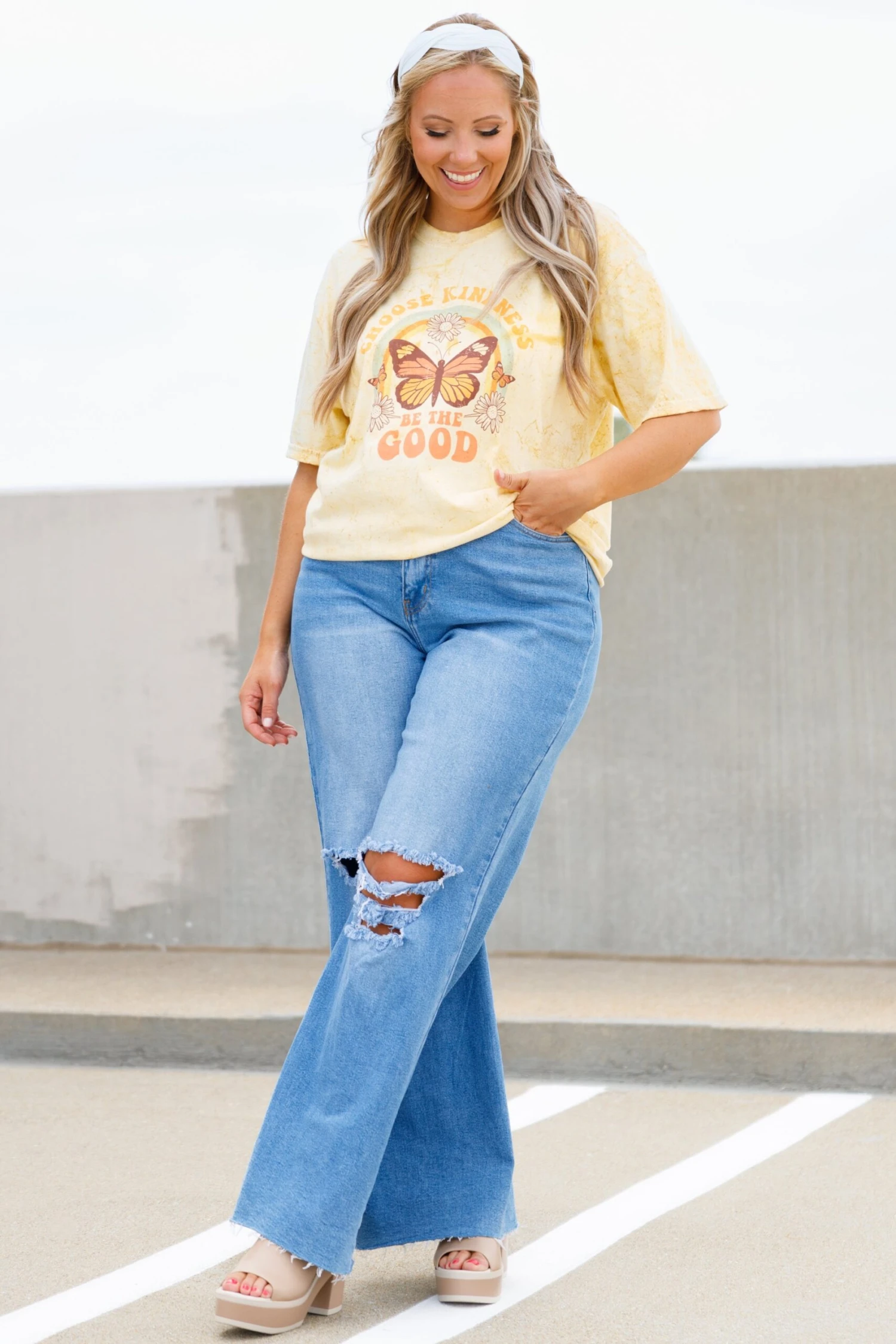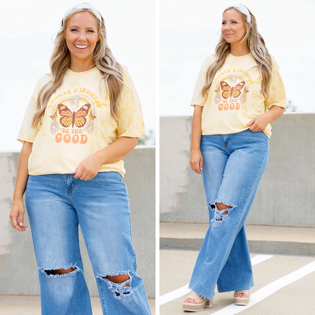 You’ll look and feel good in this adorable tee! It has a citrine color and a super comfy fit that is great for all day wear! The classic t-shirt fit is so easy to style with all of your favorite denim and accessories for a classic chic look!