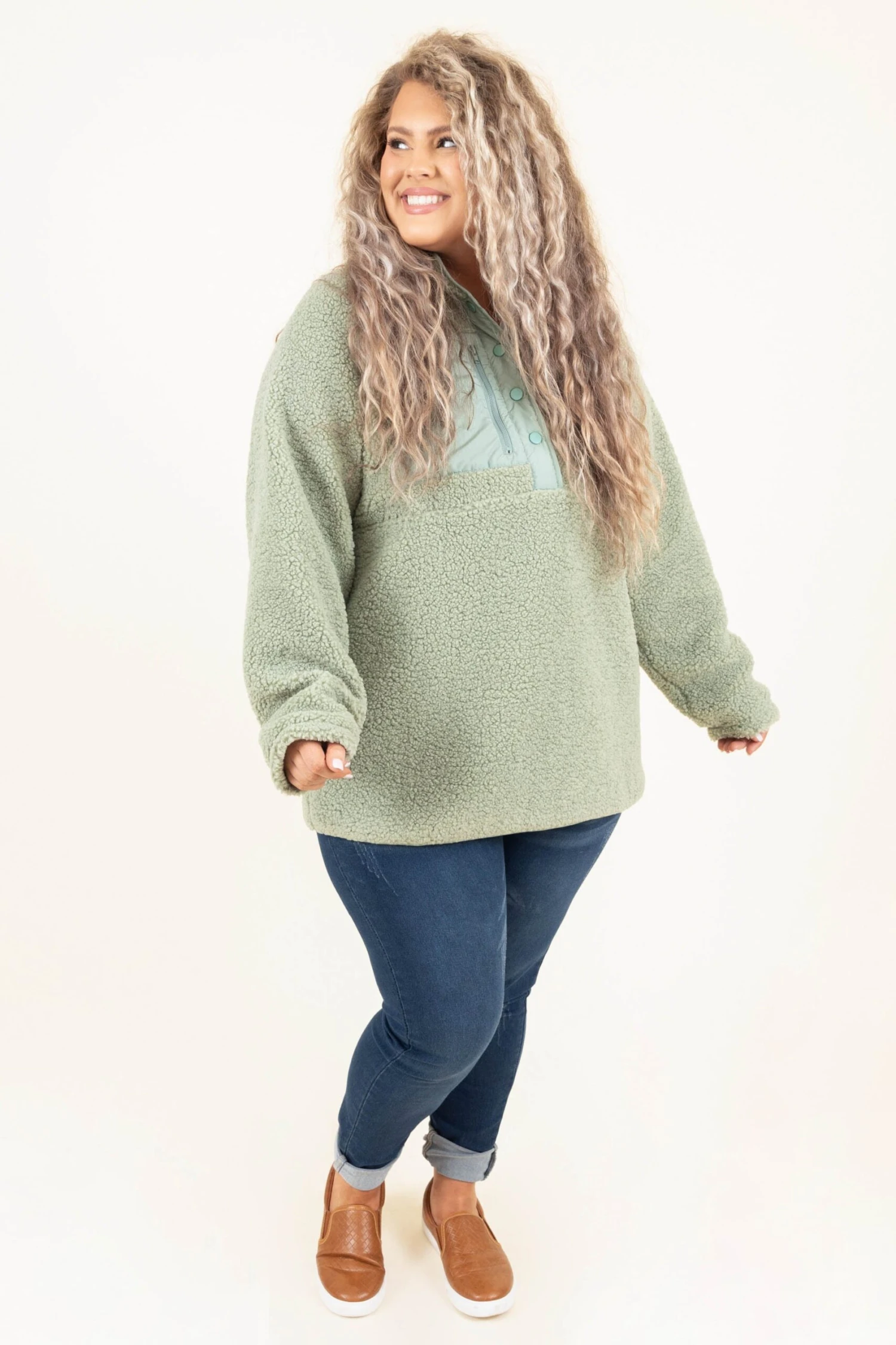 Prepare for those cool days ahead with this comfy pullover! This pullover has a soft sage color and a cozy material to keep you warm this season! Add this pullover to your wardrobe for the perfect layering piece! Pair it with some skinnies and sneakers for a casual, chic look!