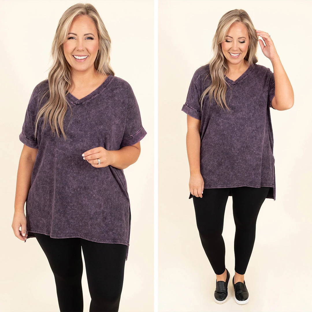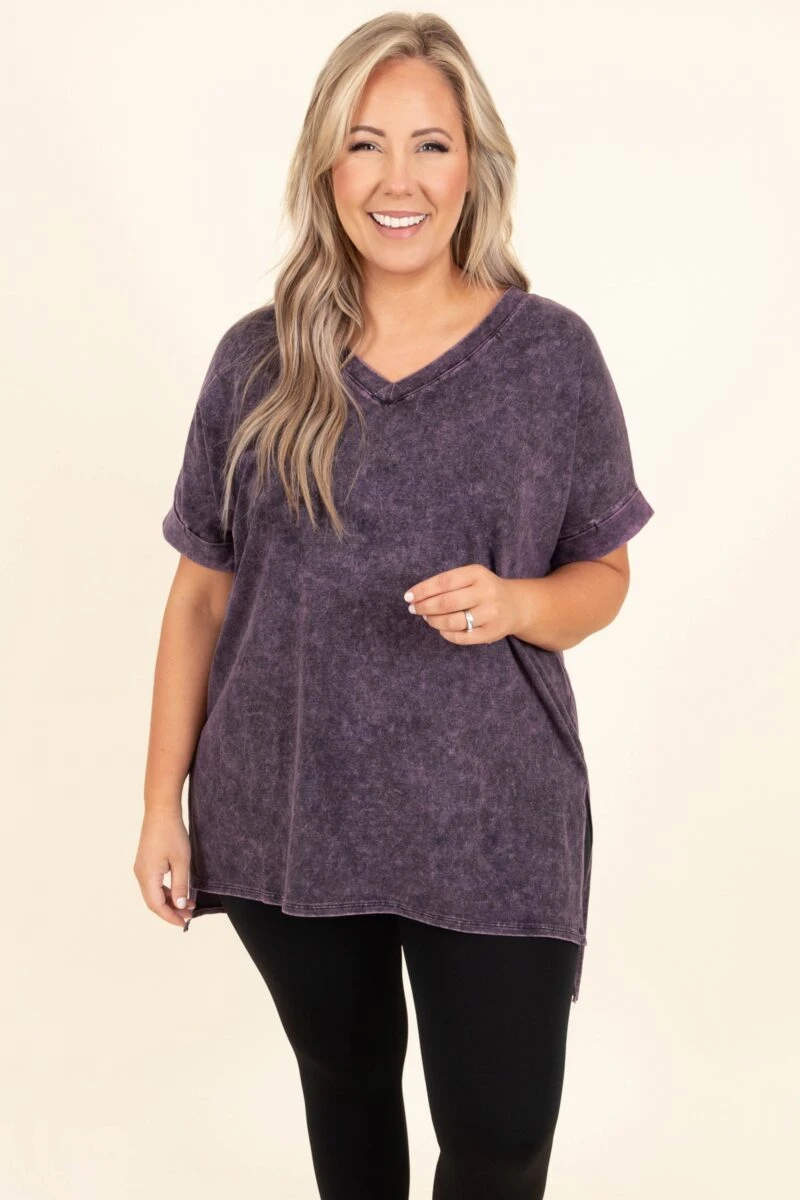 Travel comfortably in this cute top! It’s a trendy blackberry mineral wash top that is a closet staple! It has a relaxed fit and super soft fabric that will keep you comfy from day to night! Throw it on with leggings or skinnies and sneakers for your next adventure!