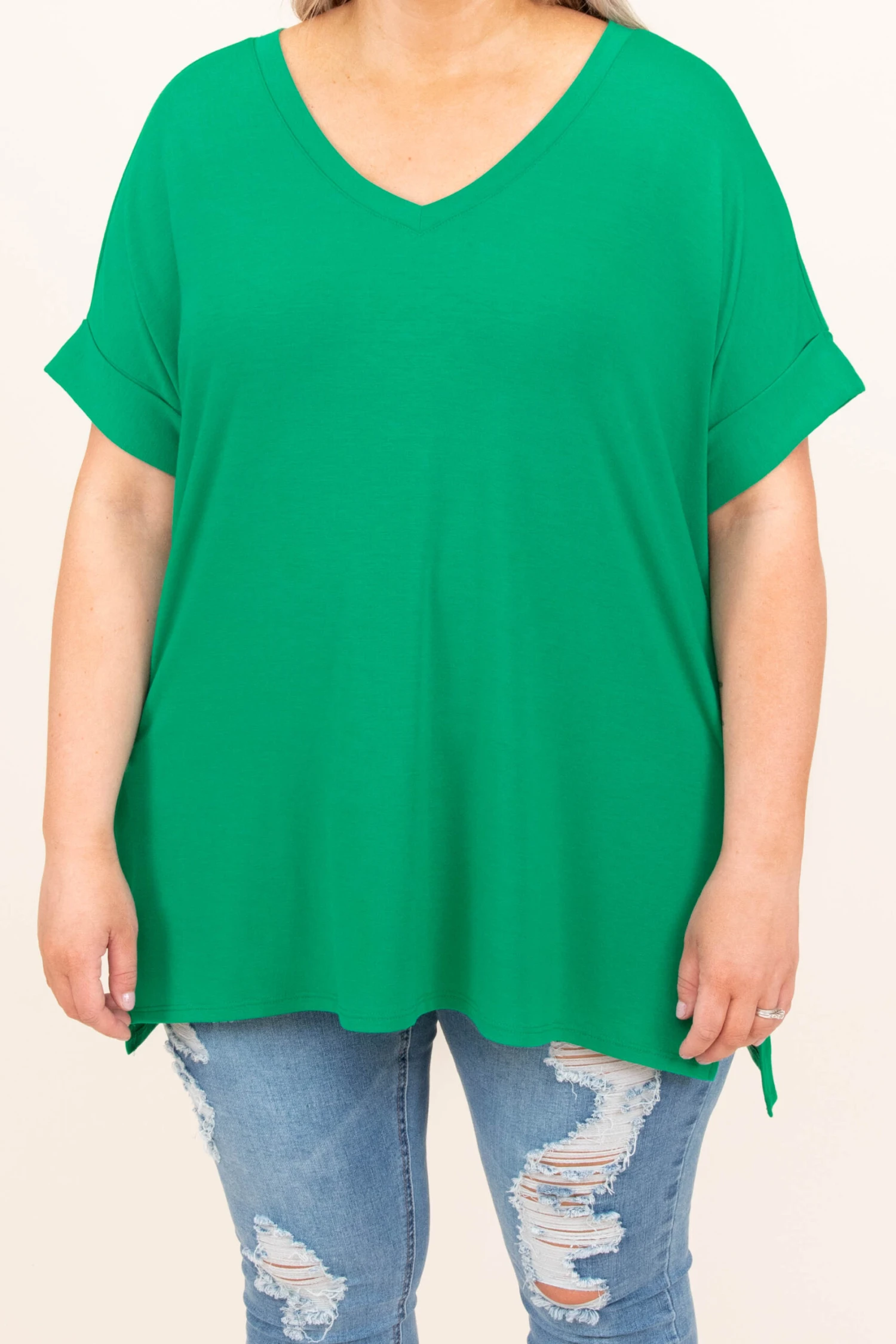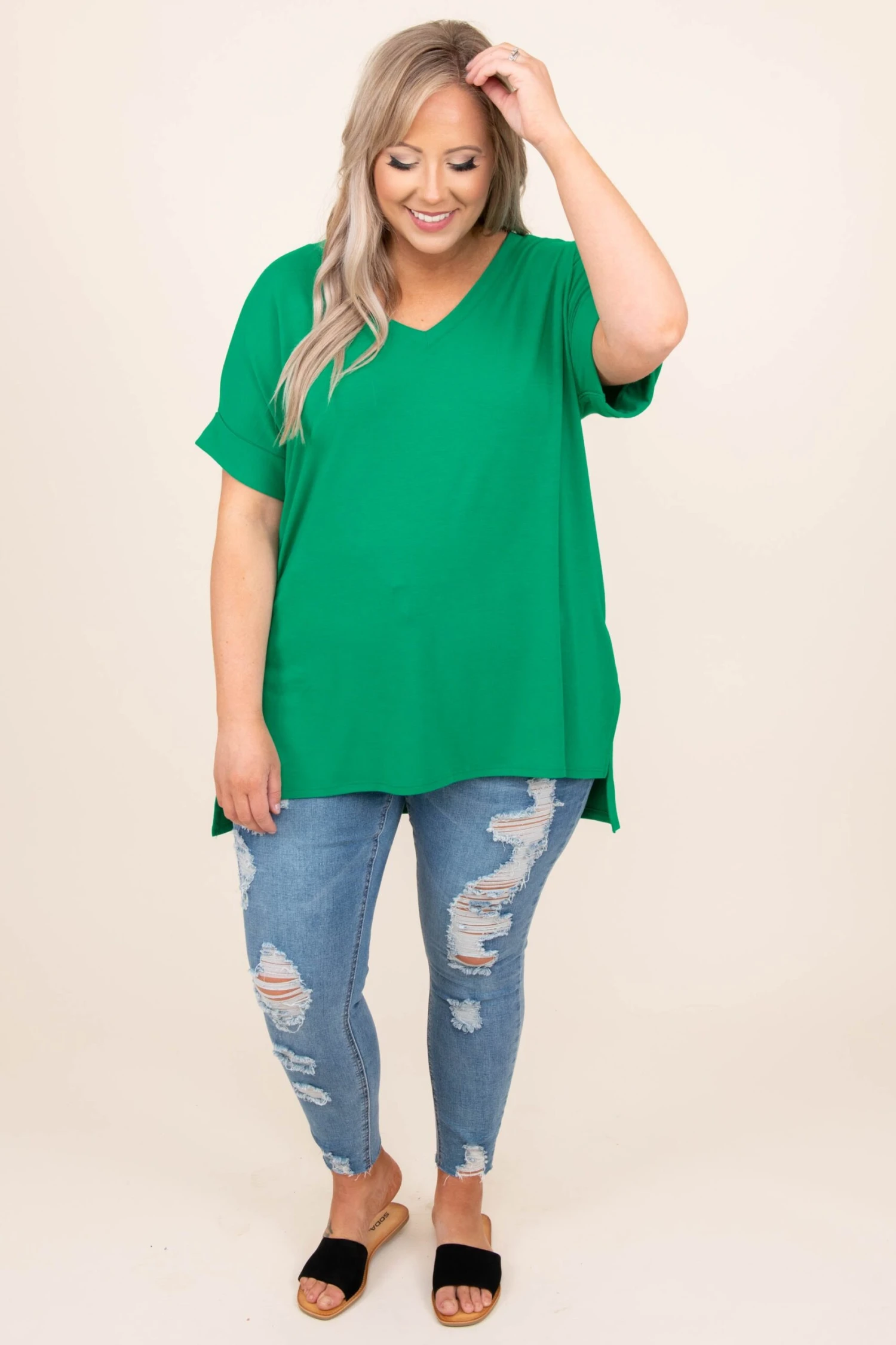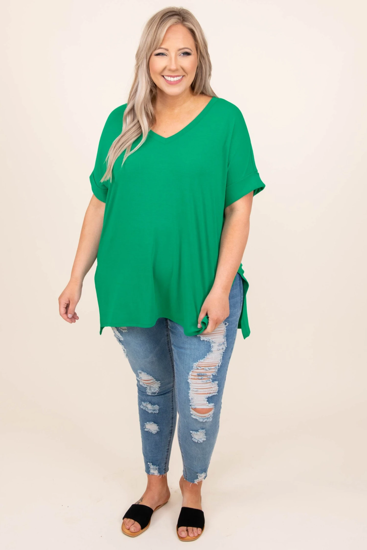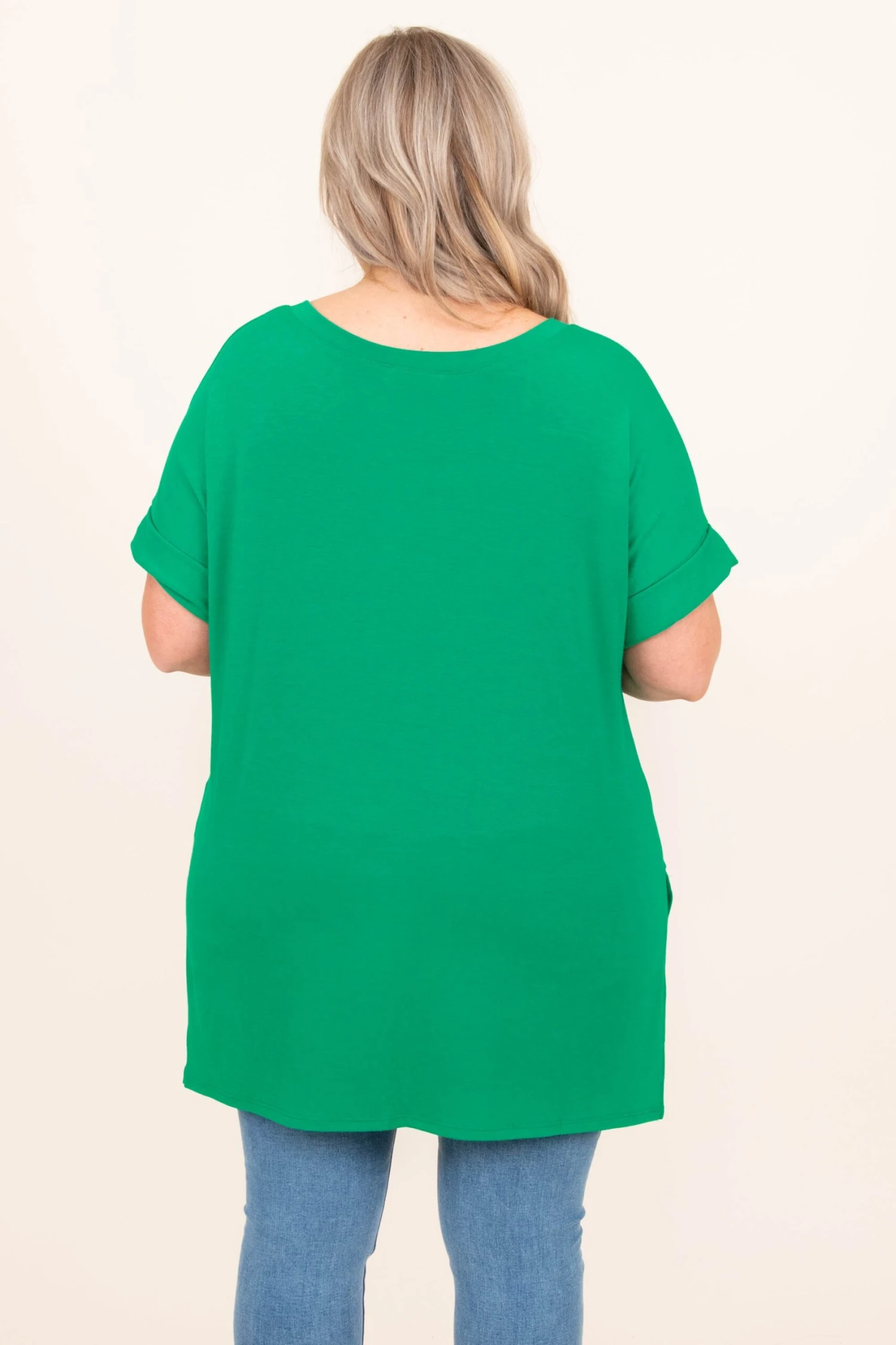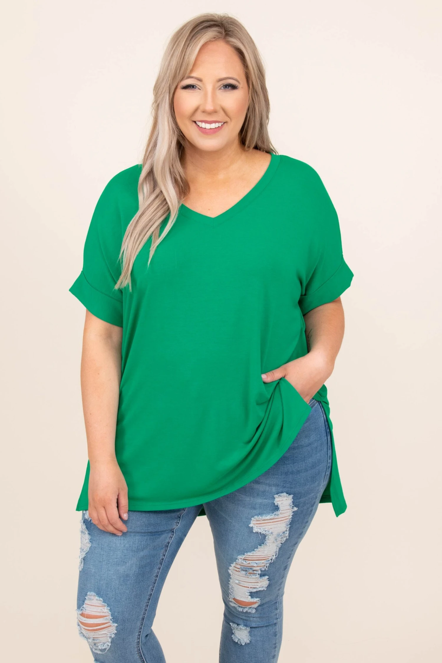 Travel comfortably in this cute top! It’s a solid kelly green top that is a closet staple! It has a relaxed fit and super soft fabric that will keep you comfy from day to night! Throw it on with leggings and sneakers for your next adventure!