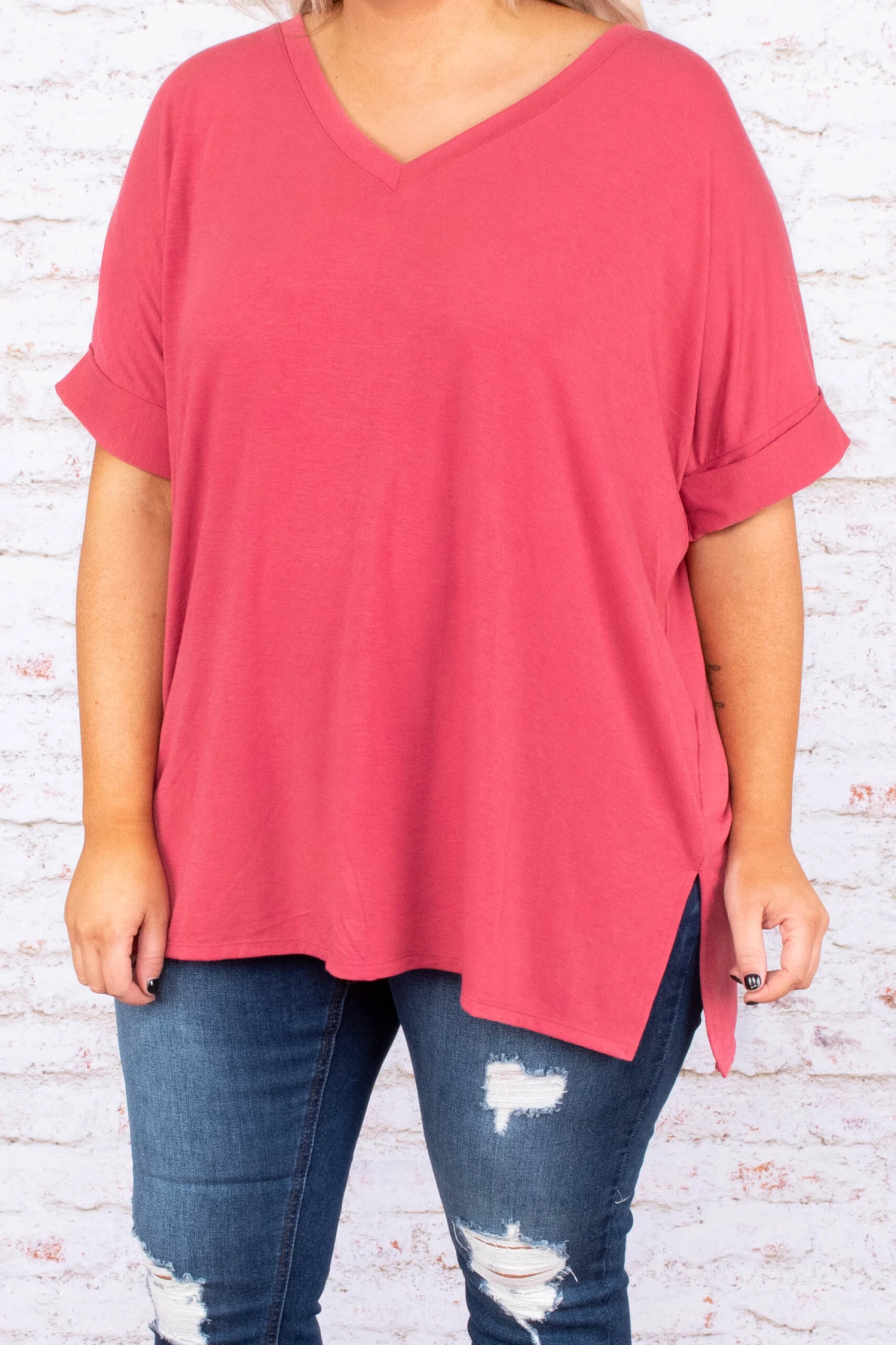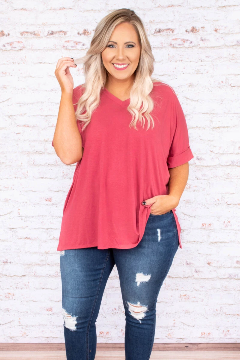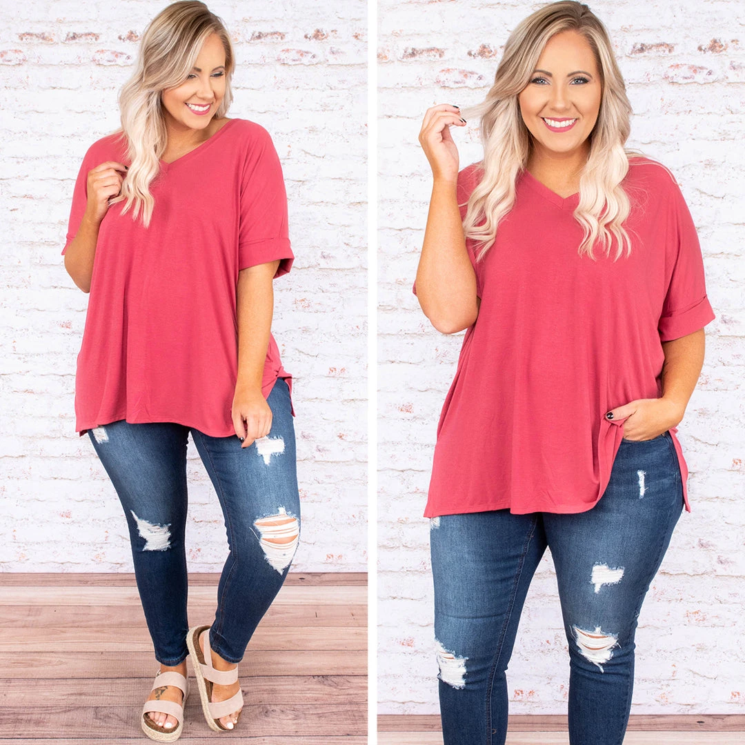 Travel comfortably in this cute top! It’s a solid rose-colored top that is a closet staple! It has a relaxed fit and super soft fabric that will keep you comfy from day to night! Throw it on with leggings and sneakers for your next adventure!