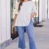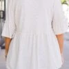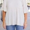 This tunic in oatmeal offers a stylish and effortless look for any occasion! Its bell sleeves, waffle knit material, and babydoll silhouette provide comfort and style! Pair it with your favorite denim for a versatile and chic outfit!