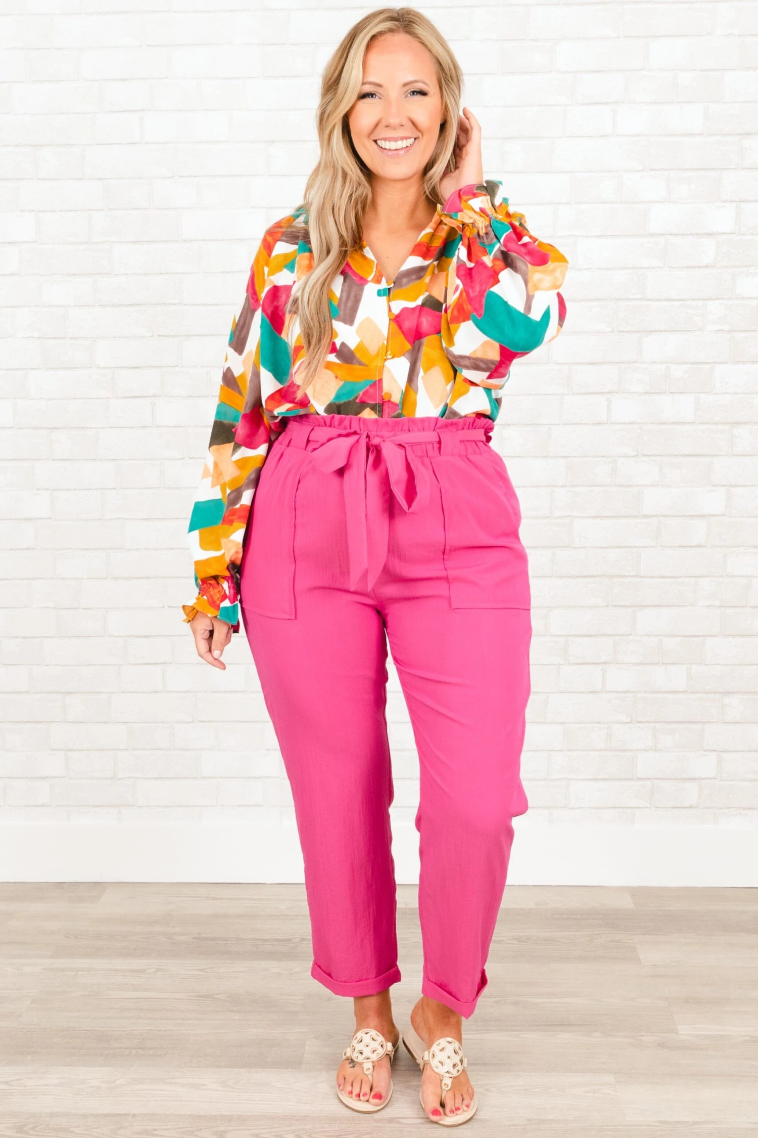 Bring a little fun to the office with this beauty! This lightweight top features an abstract pattern that adds the perfect pop of color to your work wardrobe! Its bubble sleeves provide extra comfort and style, making for a great choice for everyday wear!