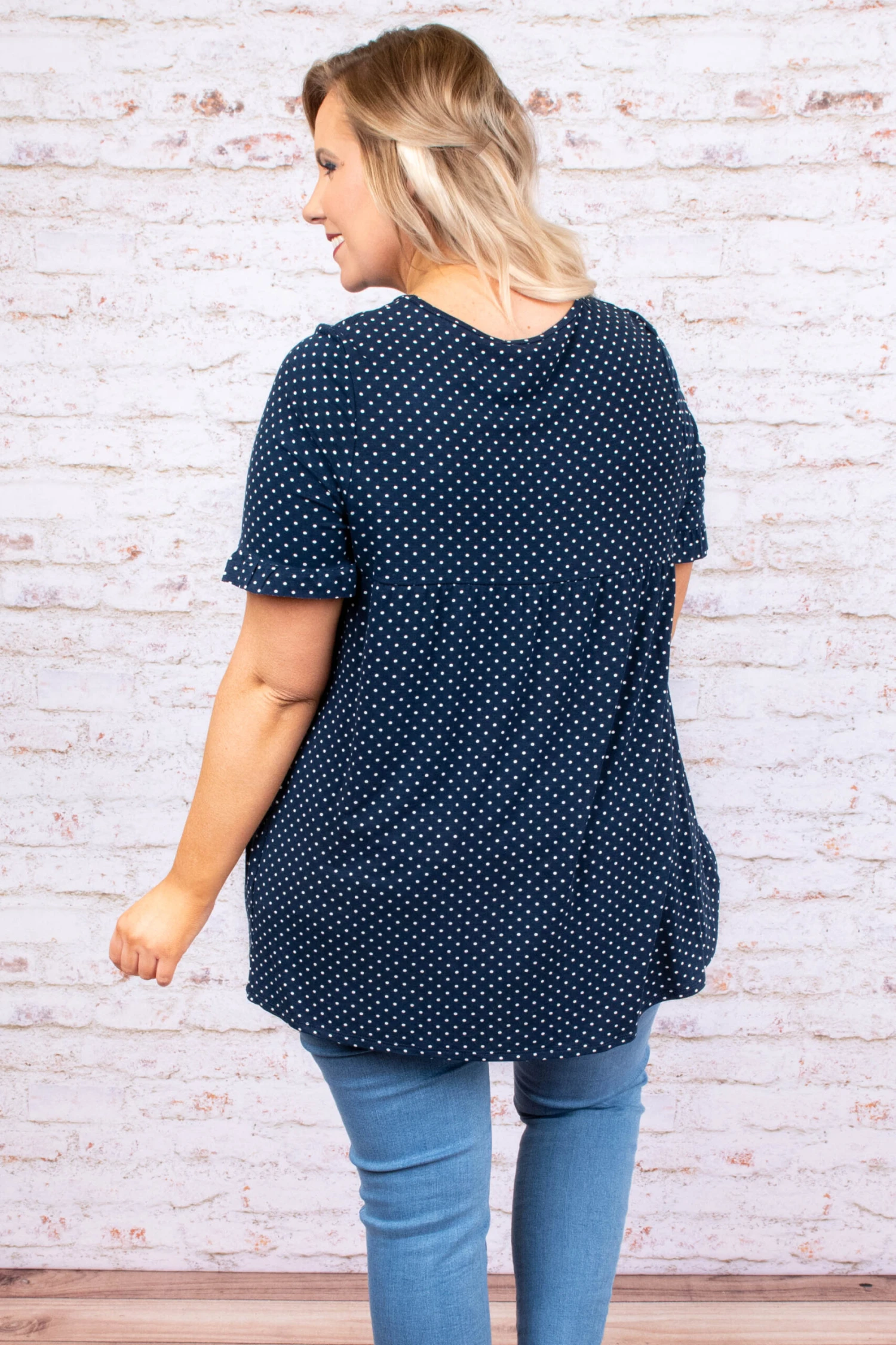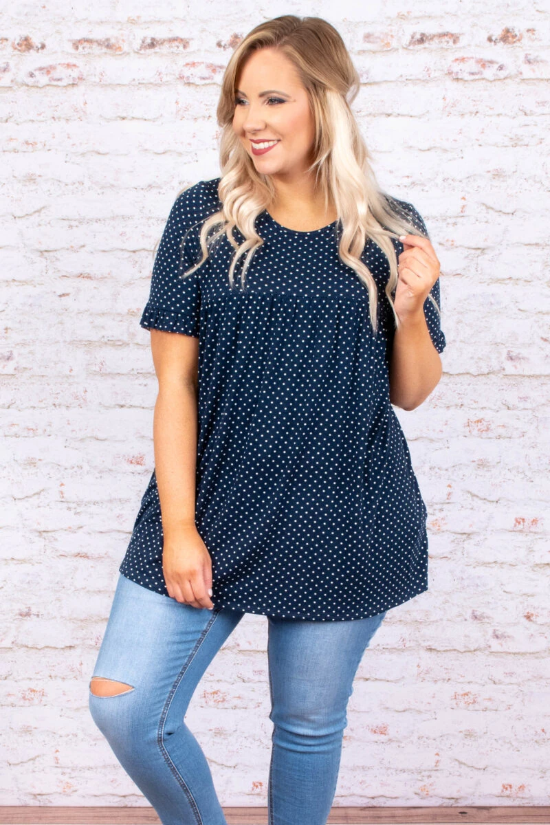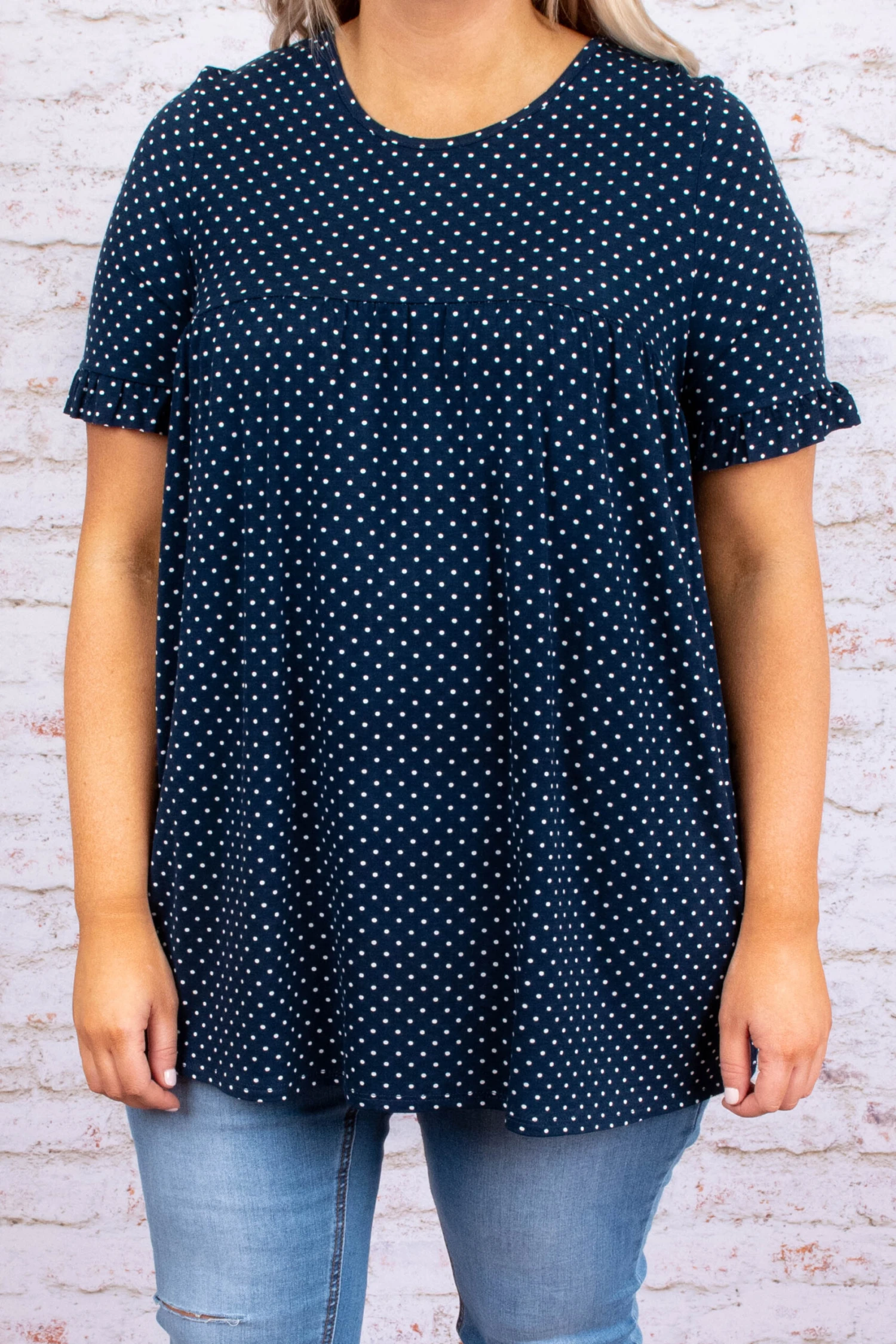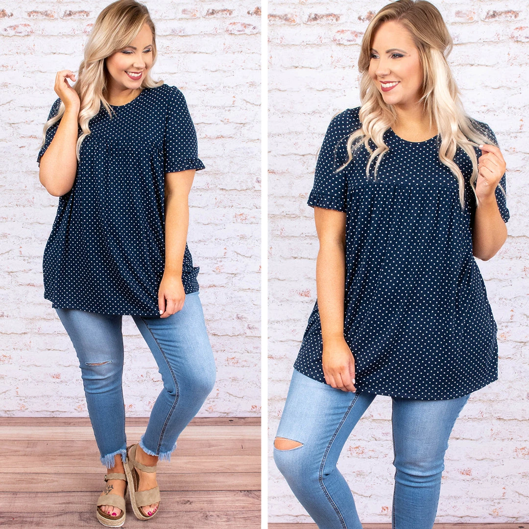 Count the stars with your love in this gorgeous top! This sweet polka dot top is perfect for date night! It has a classic fit and ruffled sleeves that are too cute! Not to mention, the neutral colors can pair with everything in your wardrobe! Toss this top on with skinnies and wedges for an easy look for your next night out!Â