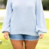 Our ALL NEW sweater is here!!! This cozy cutie has flattering bubble sleeves, and long loose fit! This sweater will be your new go-to piece for the Fall and Winter or any time of year, really! It is seriously the softest material ever, and the sky blue color makes it SO fun to style! Pair it with leggings, shorts, sandals, a sneakers, or some glam accessories…seriously the opportunities are endless!! This comfy, cute beauty is a must-have!!