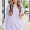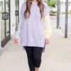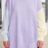 Get ready for cozy days ahead with this sweater! Its drop shoulder design and high low hemline provide a lightweight and comfortable fit! With a playful color block style and reverse hem details, this sweater is perfect for pairing with denim or leggings! Don’t miss out!