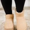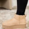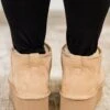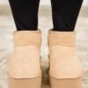 Step up your style game with these booties in oatmeal! These trendy platform booties are not only fashion-forward, but also incredibly comfortable! Featuring faux fur lining, your feet will feel loved and cozy all day long! Perfect for any outfit, these ankle booties are a must-have for any fashionista!