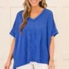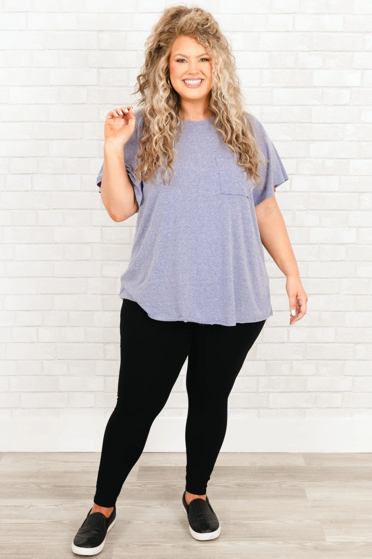 Be cozy and chic in this top! It has a solid denim color you can dress up or down for every occasion! It’s comfortable for all-day wear, has an oversized fit, and features a classic scoop neck! Style this top with skinnies or shorts for an effortlessly chic look!Â
