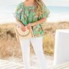 Take your style to new heights with this top! This green tropical abstract printed top features a square neckline and puff sleeve detail, making it a bold and unique addition to your wardrobe! Perfect for those who love taking fashion risks and want to stand out from the crowd! Make a statement with this one of a kind piece!