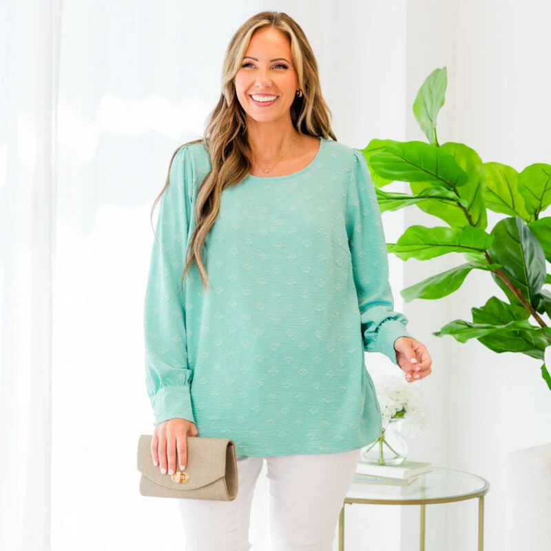 Indulge in the luxurious swiss dot detail of our Crazy Little Thing Top! With stylish button cuffs, this top is perfect for elevating your office wardrobe or stealing the show on date night! Add a touch of sophistication to any occasion with this versatile and charming top.