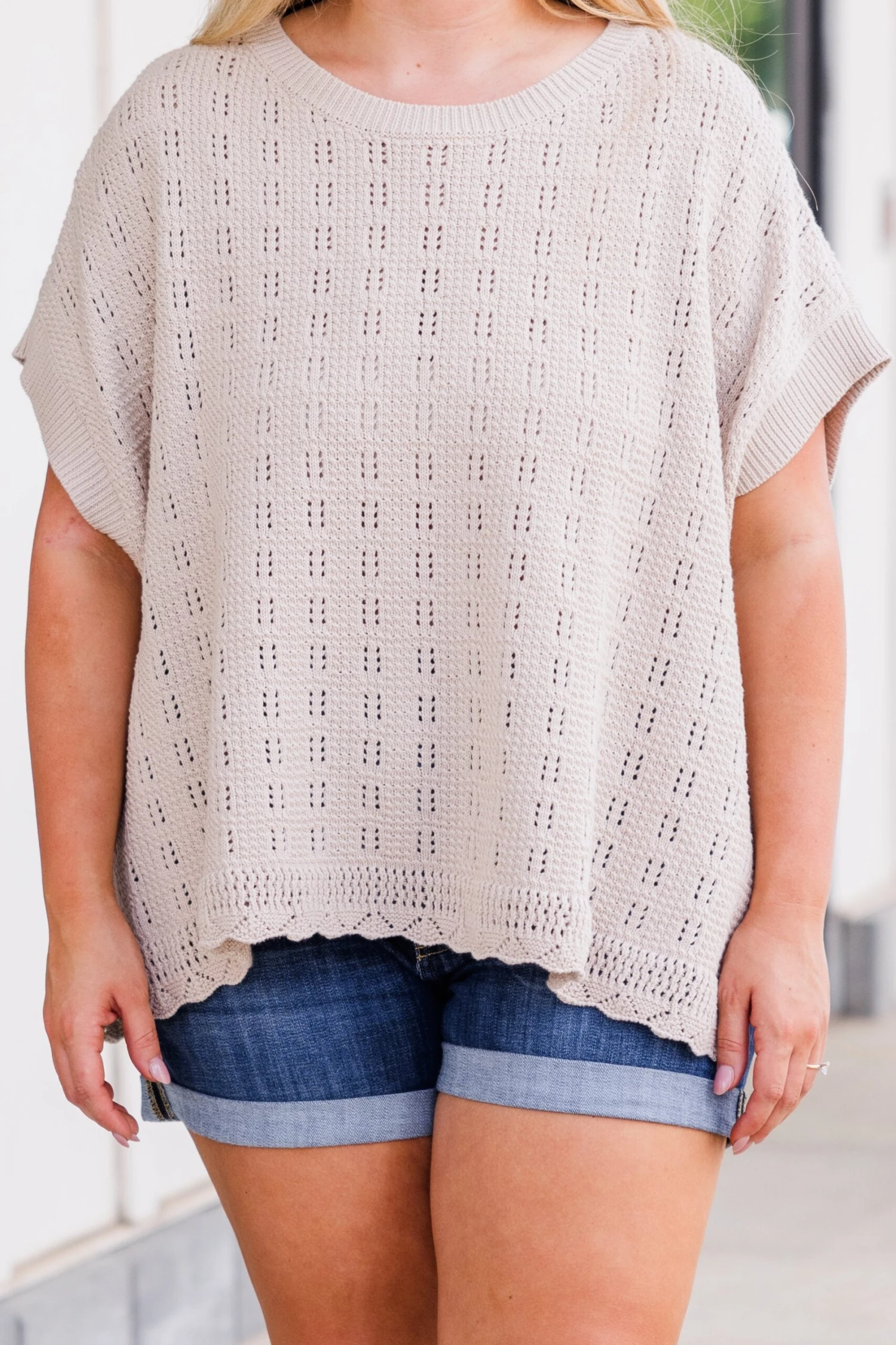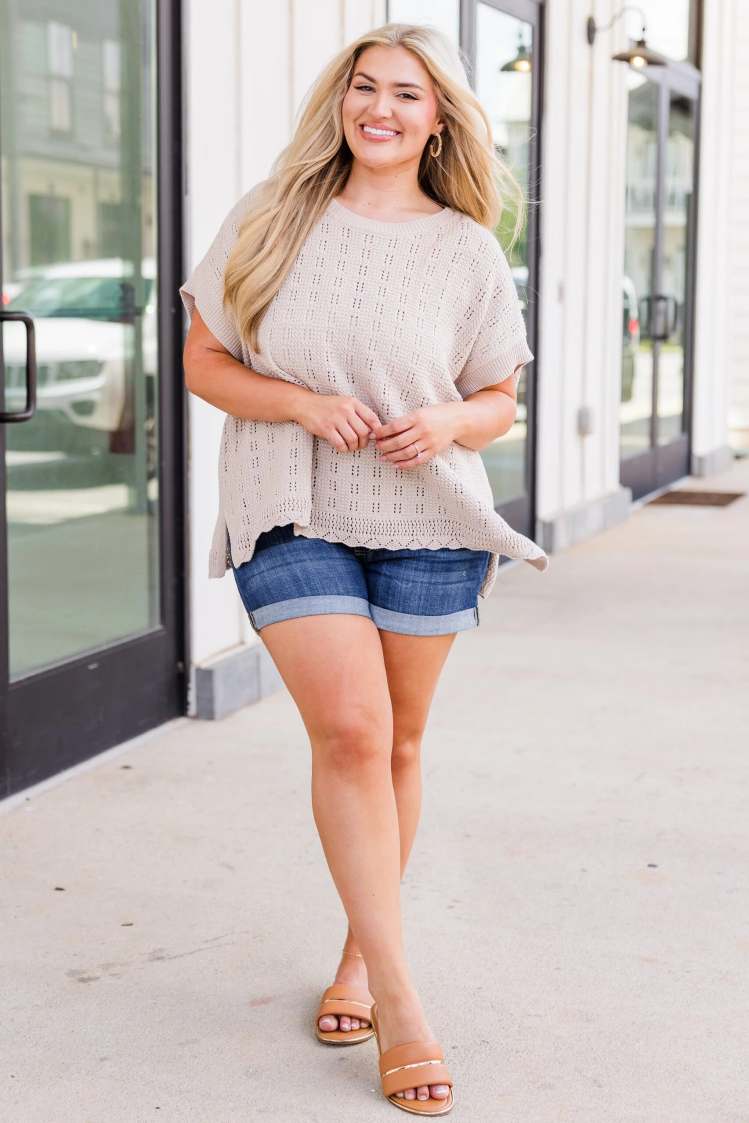 Introducing the Crazy Lovin Top – the perfect mix of comfort and style! Made from a textured lightweight knit, this sweater top features a relaxed fit, a side split hem, and a scalloped hem detail! Versatile enough to pair with your favorite denim or shorts! Get ready for some serious coziness!