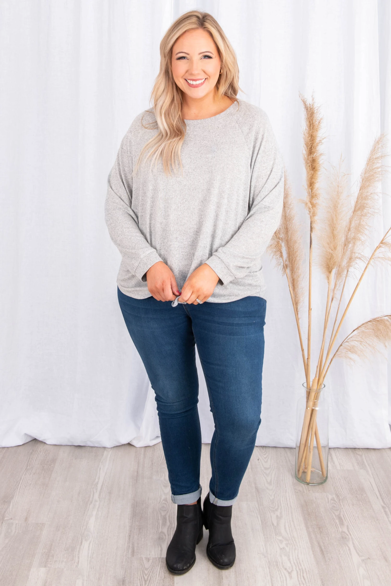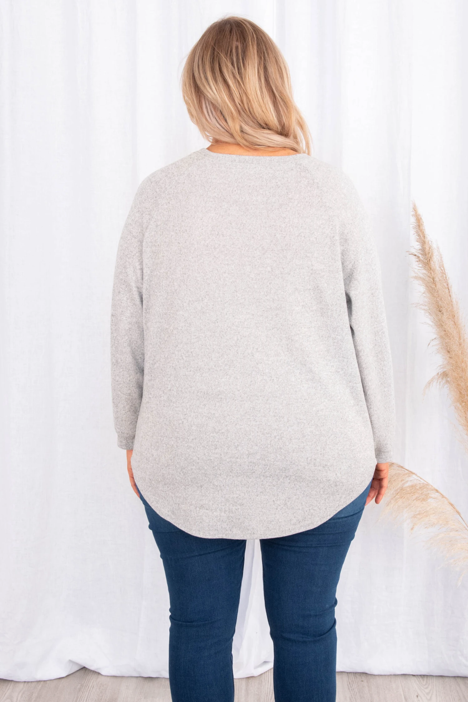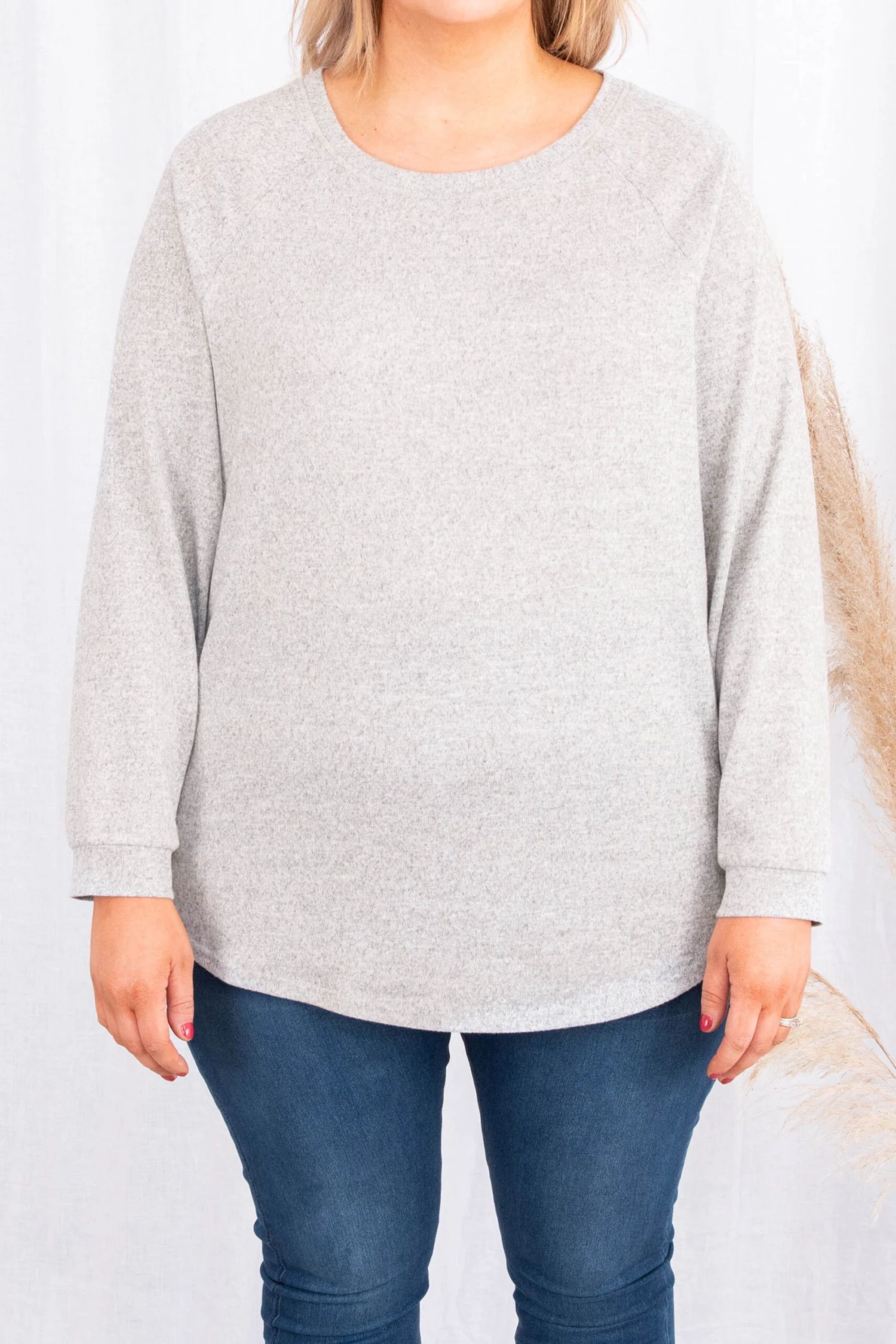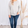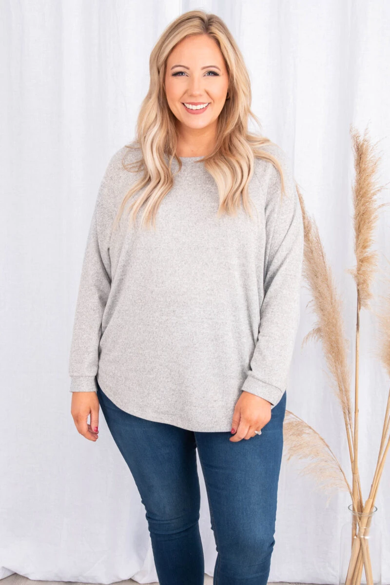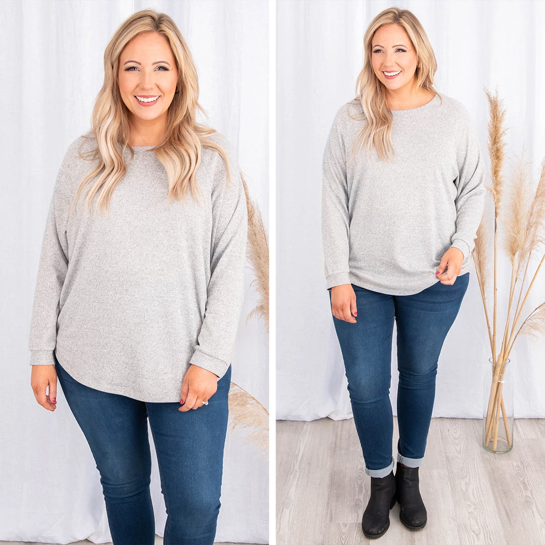 Our ALL NEW curved hem knitted slouchy is here!!! This popular heather gray tunic has a flattering CURVED hem, our signature dolman sleeves, and a long, looser fit! This tunic is going to be your new go-to piece for the fall and winter! It is seriously the softest knitted material ever, and the color makes it SO easy to style! Pair it with leggings, skinnies, booties, flats, a scarf, some bold accessories…seriously the opportunities are endless!!