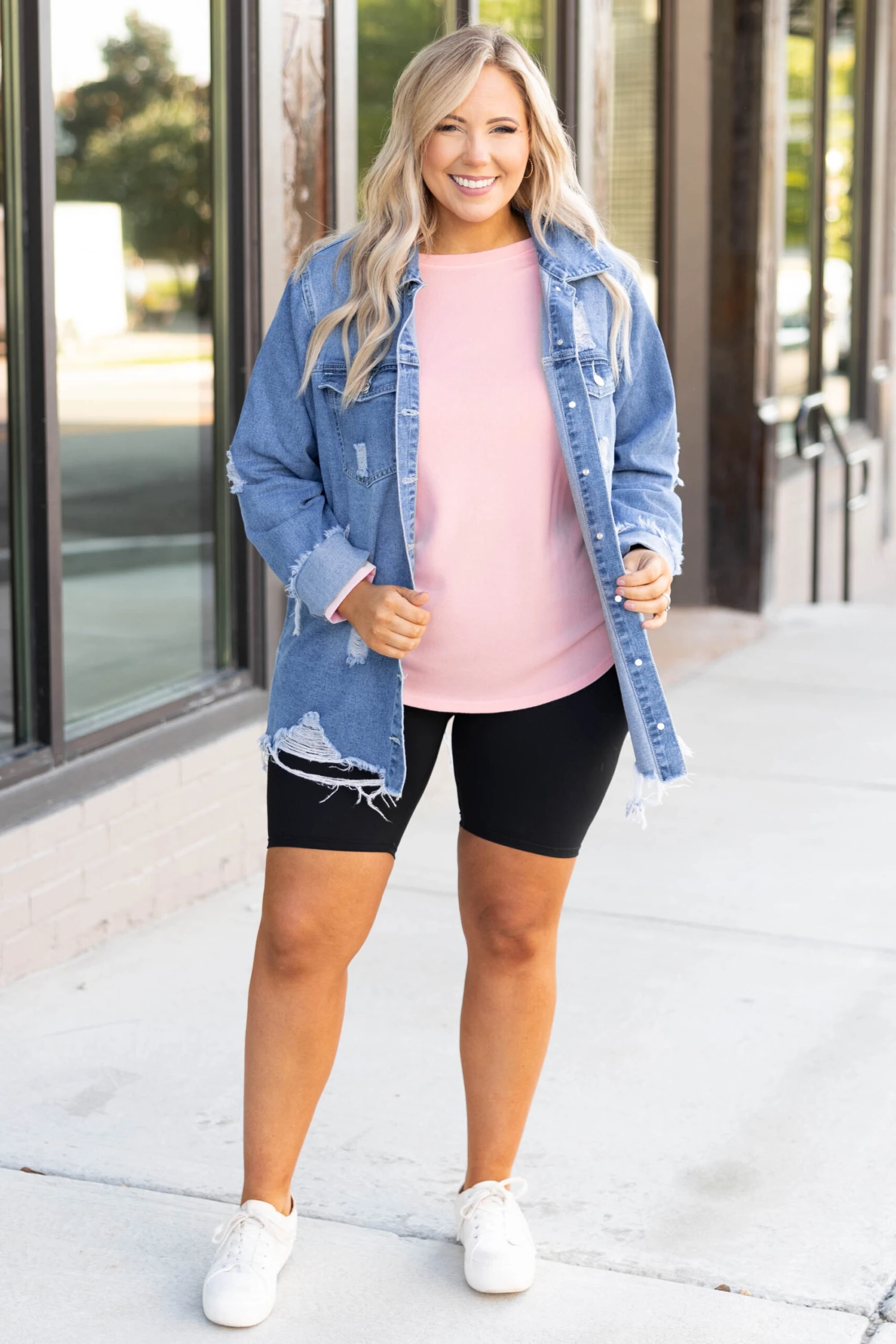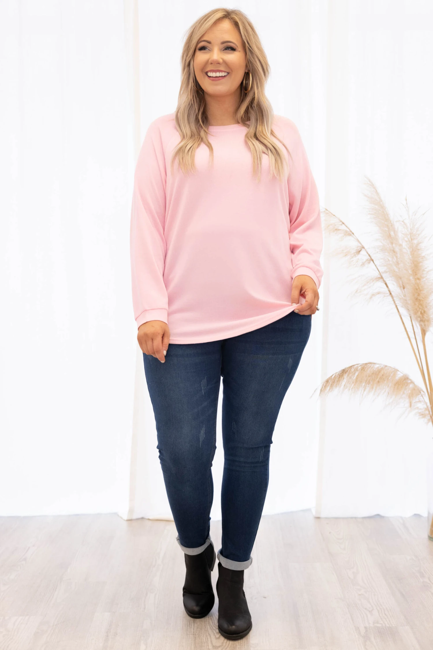 Our ALL NEW curved hem knitted slouchy is here!!! This chic pink tunic has a flattering CURVED hem, our signature dolman sleeves, and a long, looser fit! This tunic is going to be your new go-to piece for the fall and winter! It is seriously the softest knitted material ever, and the color makes it SO easy to style! Pair it with leggings, skinnies, booties, flats, a scarf, some bold accessories…seriously the opportunities are endless!!